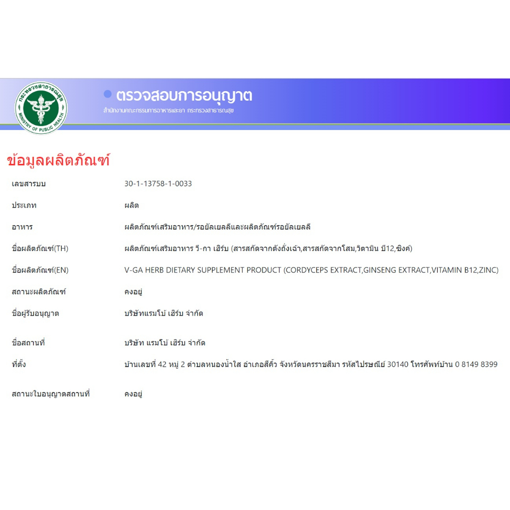 อย.เลขที่ 30-1-13758-1-0033