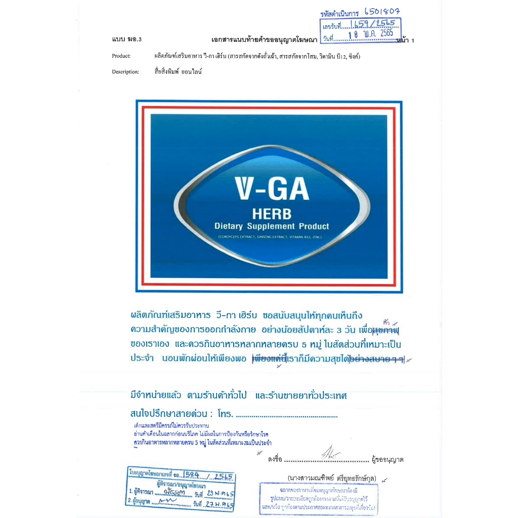 ใบอนุญาตโฆษณาเลขที่ ฆอ.1584-2565