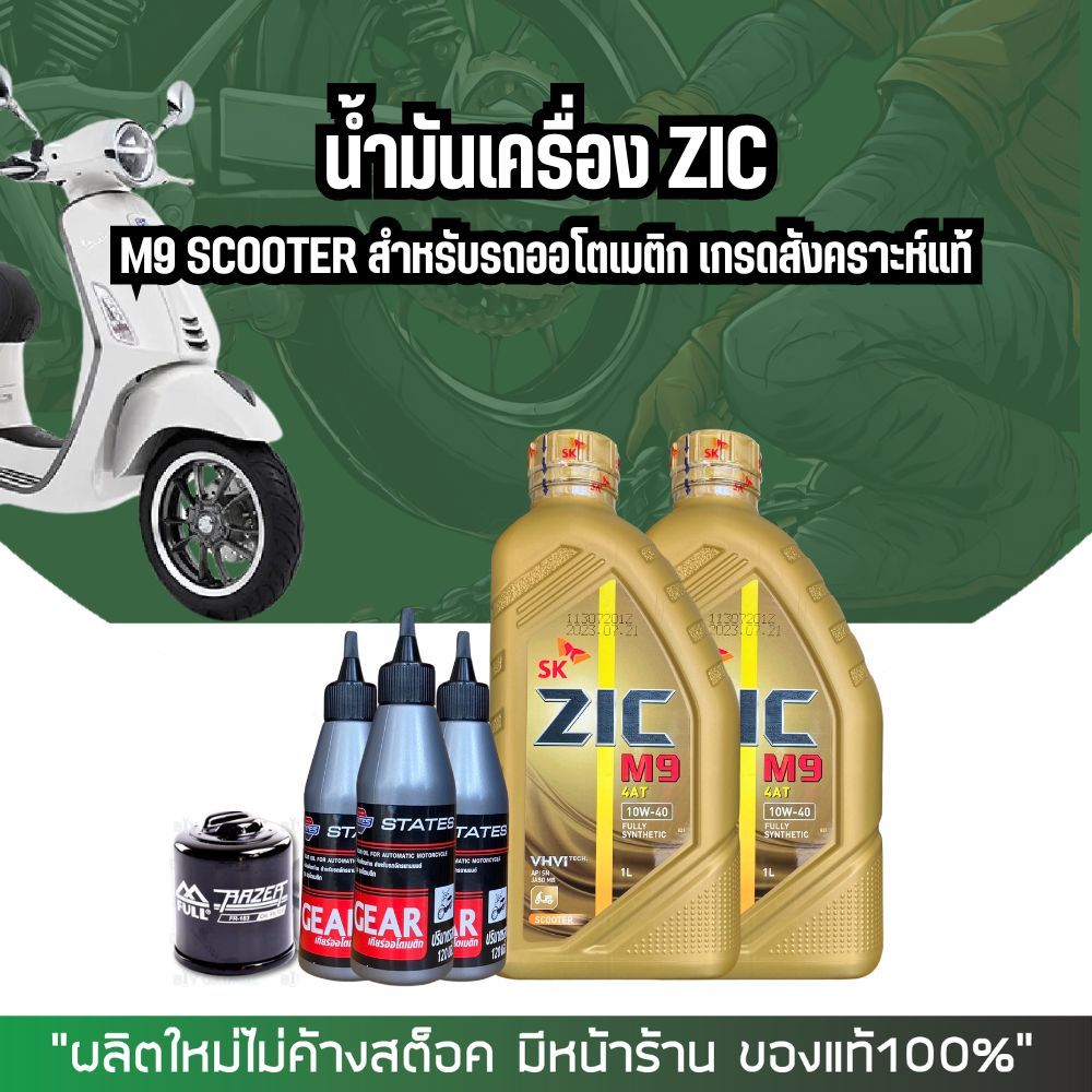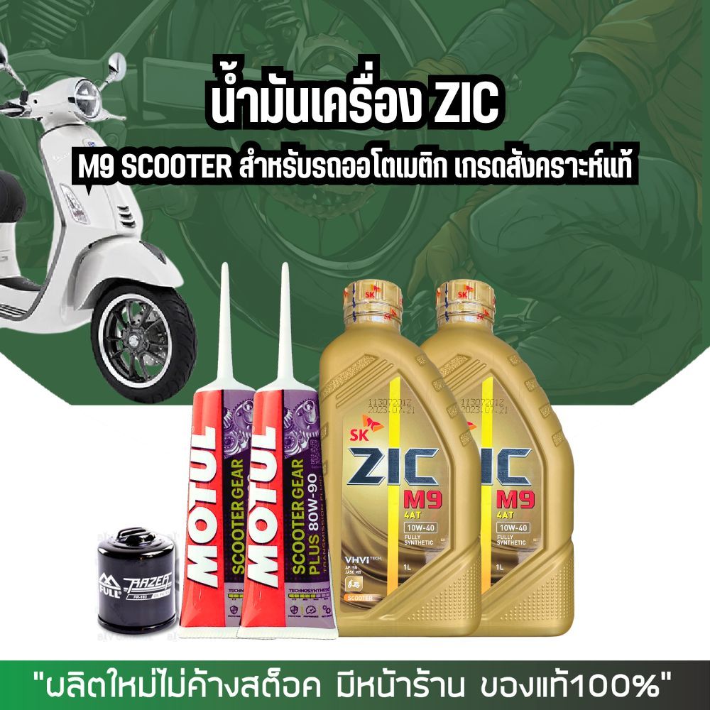 น้ำมันเครื่อง VESPA น้ำมันเครื่องสังเคราะห์ ZIC M9 SCOOTER 10W-40 ขนาด 1 ลิตร + น้ำมันเฟืองท้าย + กรองน้ำมันเครื่อง