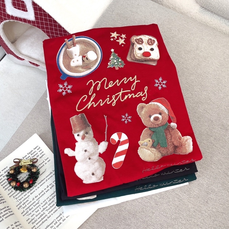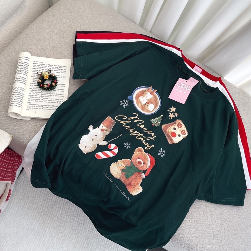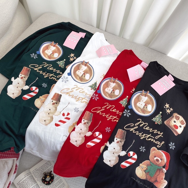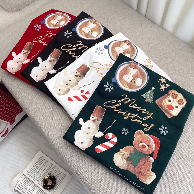 Christmas collection🐻เสื้อยืดทรงโอเวอร์ไซต์สกรีน มาชเมลโล่ bred (S156)