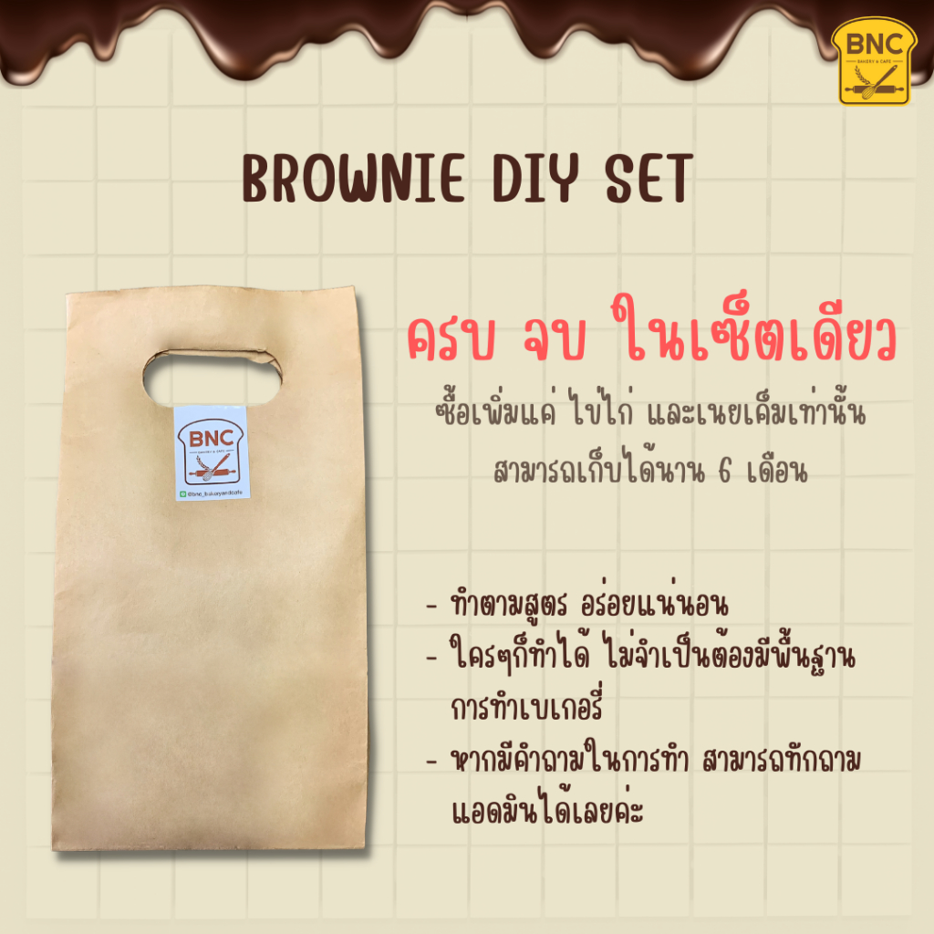 ชุด DIY บราวนี่ ขนาด 2 ปอนด์ วัตถุดิบพร้อมทำ มีฟอยล์ใส่อบ มีสูตรให้ การันตีความอร่อย ทำง่าย ใครๆก็ทำได้ By BNC Bakery and Cafe