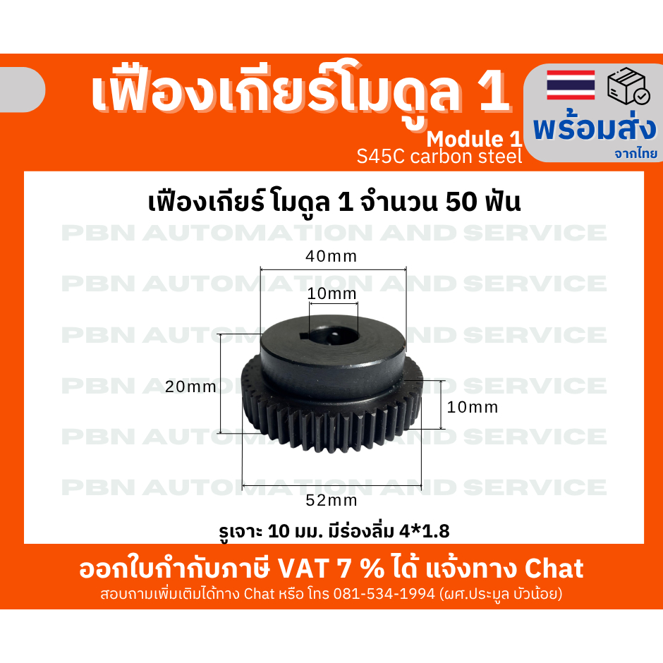 เฟืองเกียร์โมดูล 1 ระยะพิท 3.14 มม.ความสูงฟัน 2.25 จำนวน 50 ฟัน