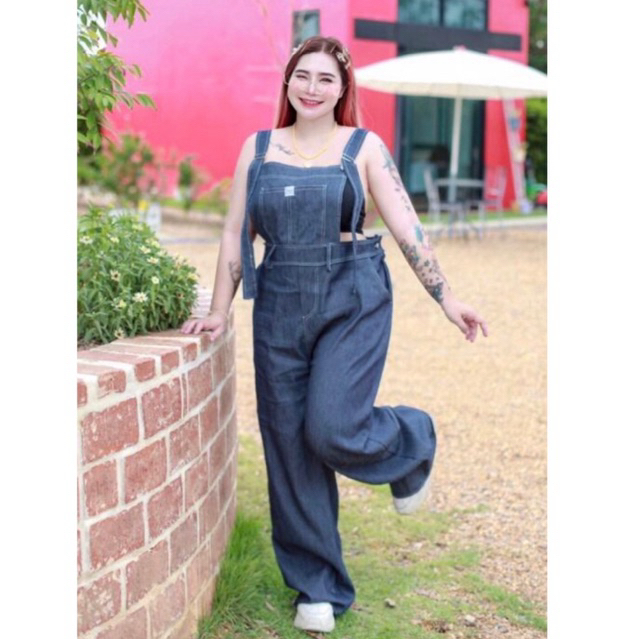 เอี๊ยมยีนส์กางเกงขายาว ไซส์ใหญ่ โชว์ตะเข็บด้ายทั้งตัว