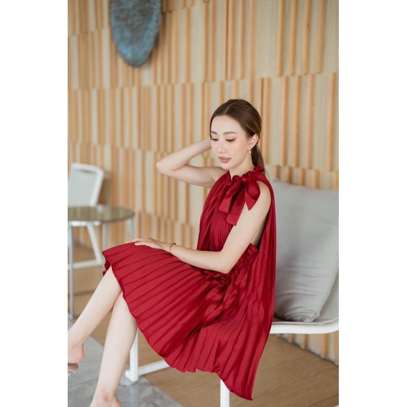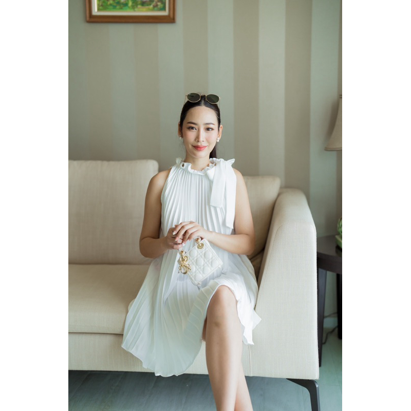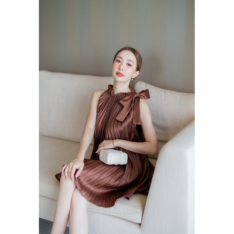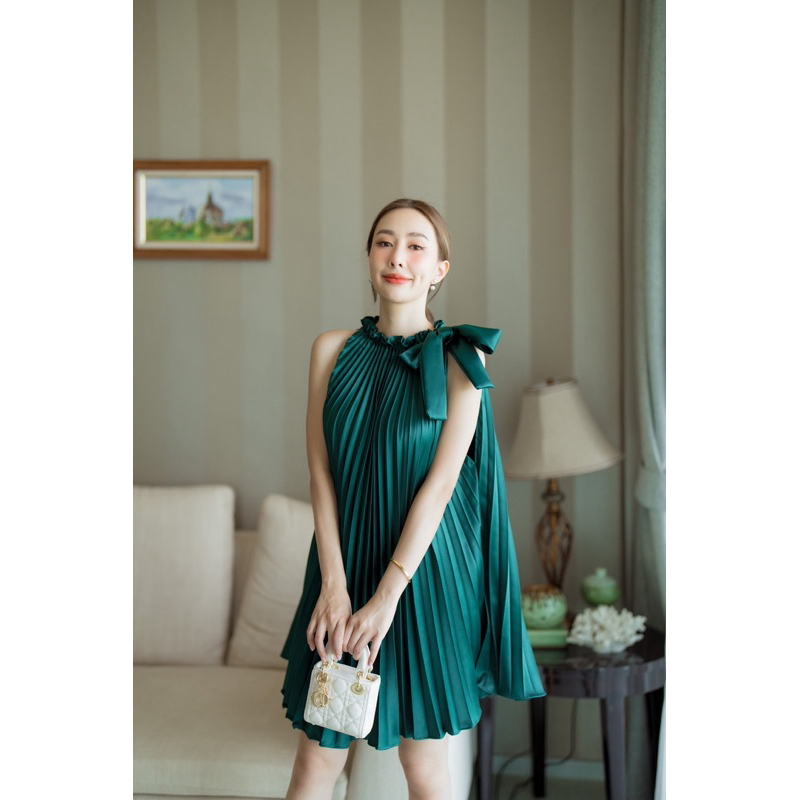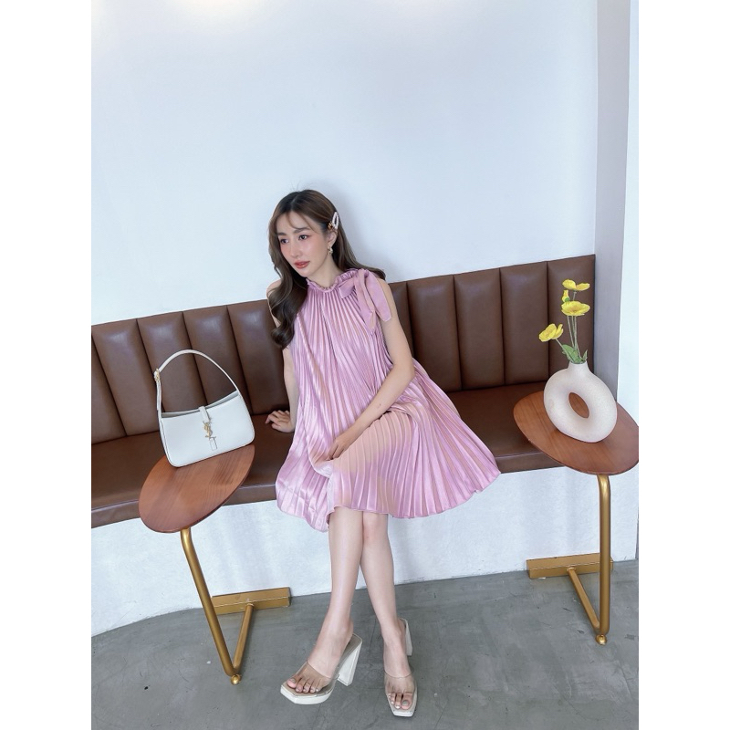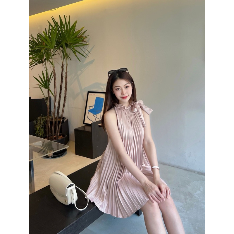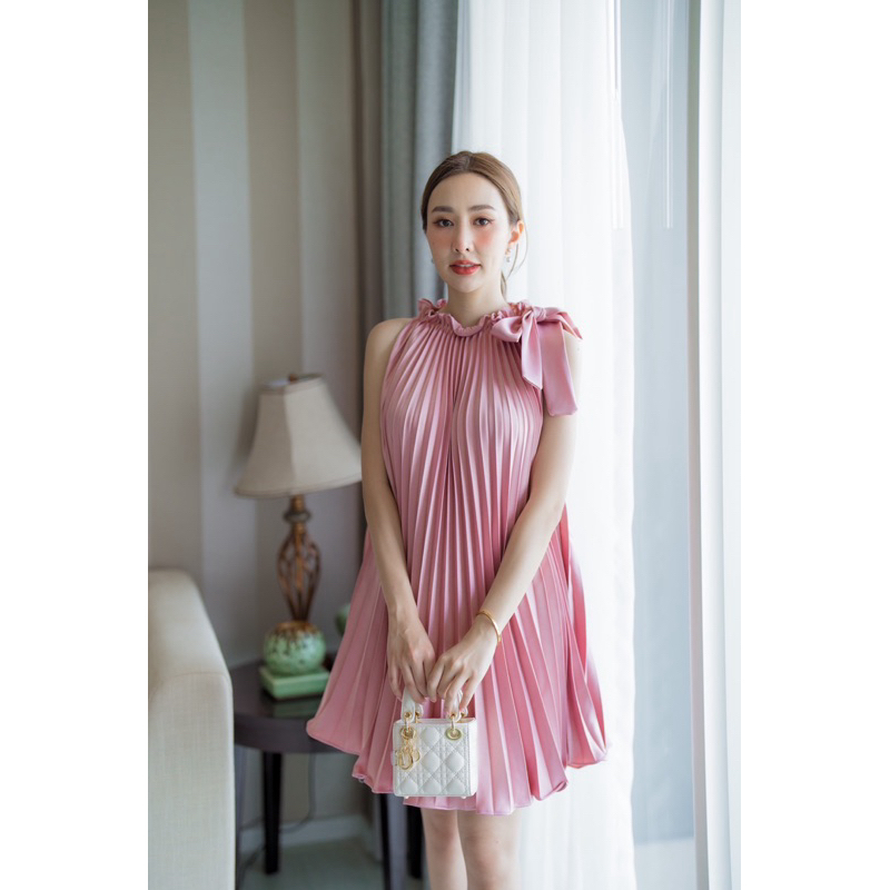 Peet Dress มินิเดรสเดรสคอผูกโบว์ เดรสอัดพลีทน่ารักใส่ออกงานได้