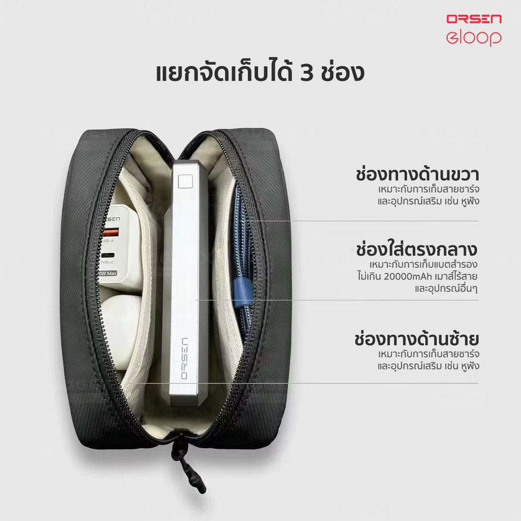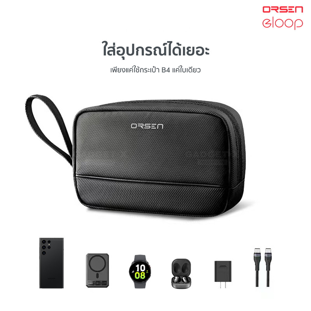 Orsen by Eloop B4 Portable Digital Storage Bag กระเป๋าอเนกประสงค์ สุดมินิมอล สามารถใช้เก็บอุปกรณ์ต่างๆได้หลากหลาย ไม่ว่าจะเป็น พาวเวอร์แบงค์ สายชาร์จ หัวชาร์จ และอุ