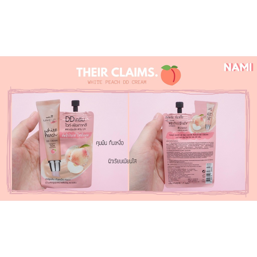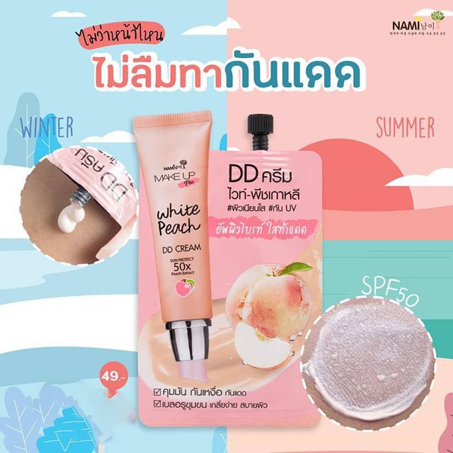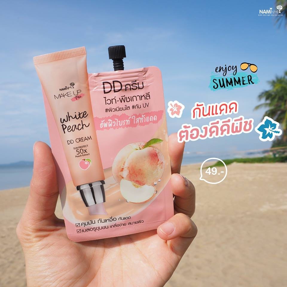 (6ซอง/กล่อง) Nami Make Up Pro White Peach DD Cream ดีดีพีชนามิ กันแดดพีช ปรับผิวใส กันน้ำ ใช้ได้ทุกสีผิว