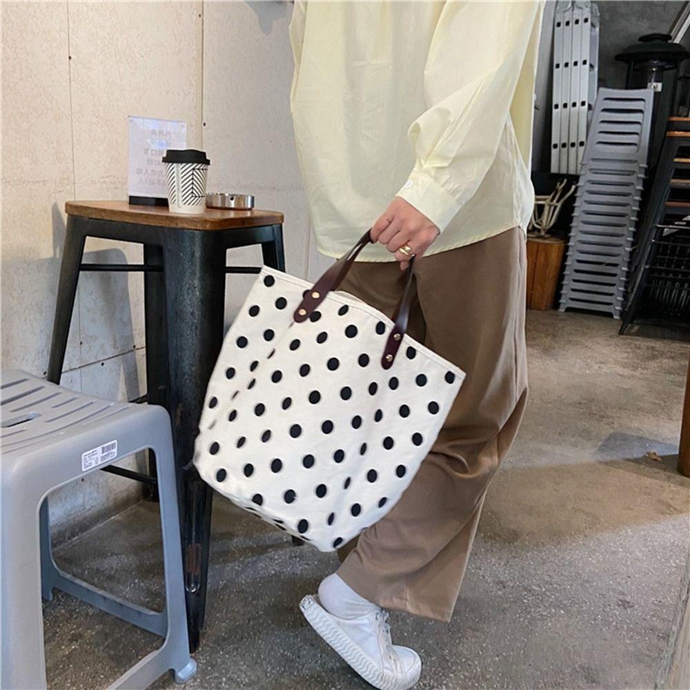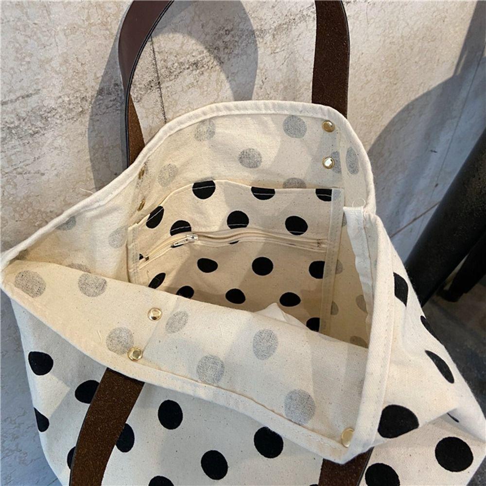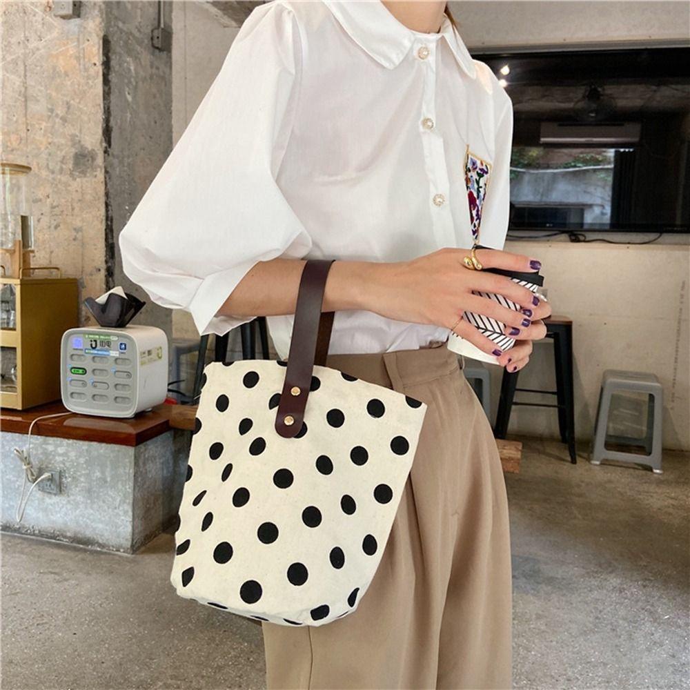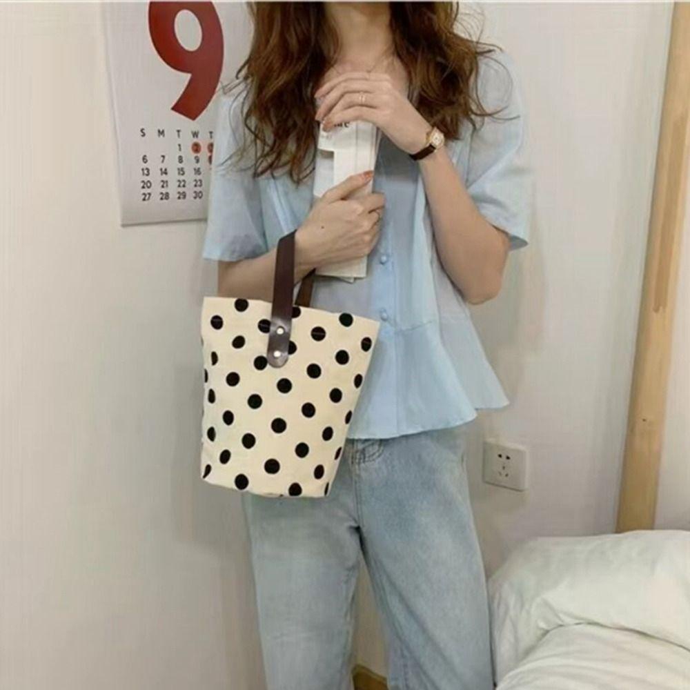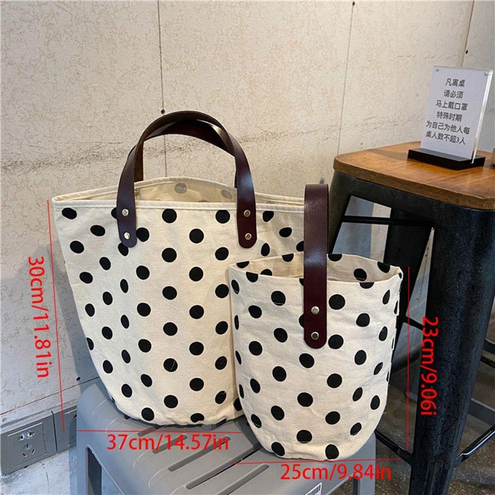 Daishen1 กระเป๋าถือ กระเป๋าเดินทาง ผ้าแคนวาส ลายจุดน่ารัก จุของได้เยอะ สําหรับใส่อาหารกลางวัน คุณแม่