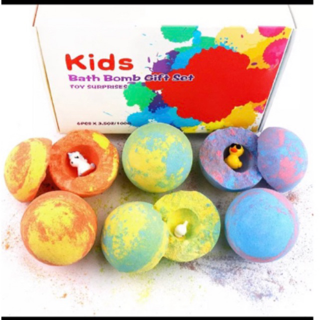 (สินค้าพร้อมส่งจากไทย) kid bath bomb box set (6 ลูก) มีของเล่นด้านใน (A2)