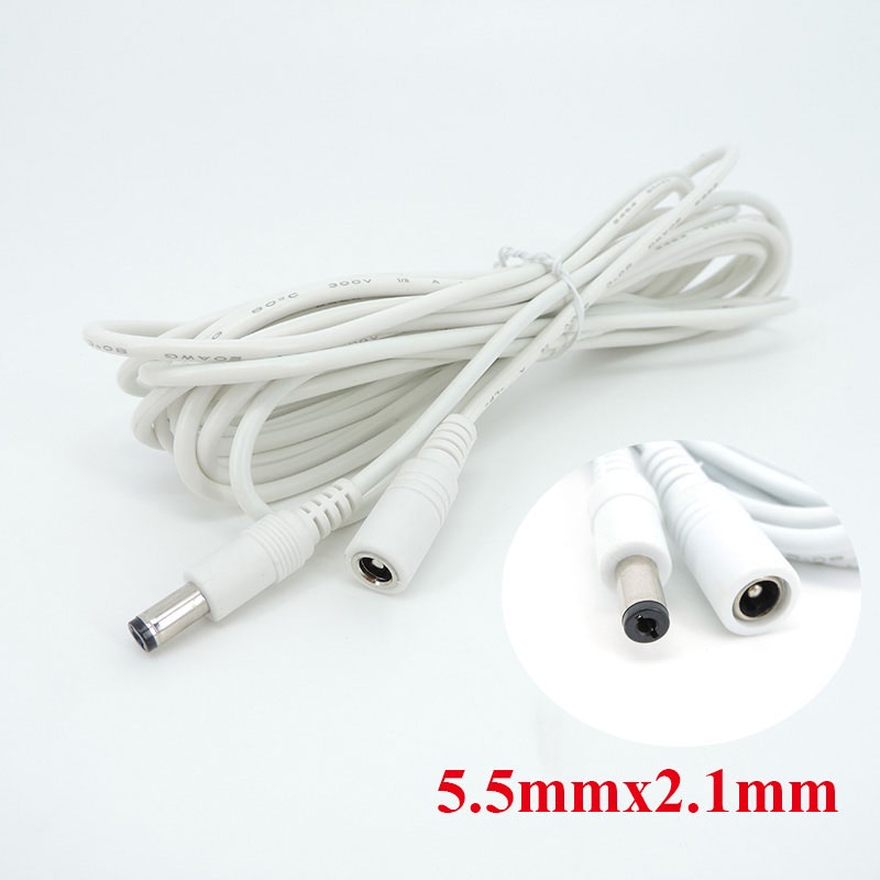 1 ม. 5 ม. สีขาว DC แหล่งจ่ายไฟขั้วต่อหญิงถึงชายสายเคเบิลสายต่ออะแดปเตอร์ปลั๊ก 12V 22awg 5.5×2.1 มม. สำหรับแถบไฟ