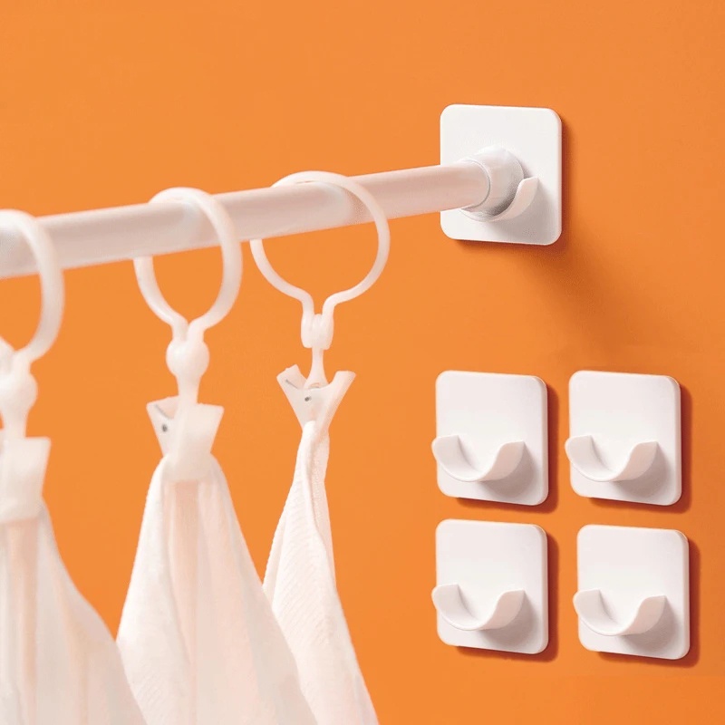 2 ชิ้น / เซต กันน้ํา แข็งแรง ราวผ้าม่าน / ที่ยึดก้านกาวในตัว ไร้รอยต่อ / ตะขอแขวนเสื้อผ้า ติดผนัง / ไม่ต้องเจาะรู ยืดไสลด์ได้ / อุปกรณ์ห้องน้ํา