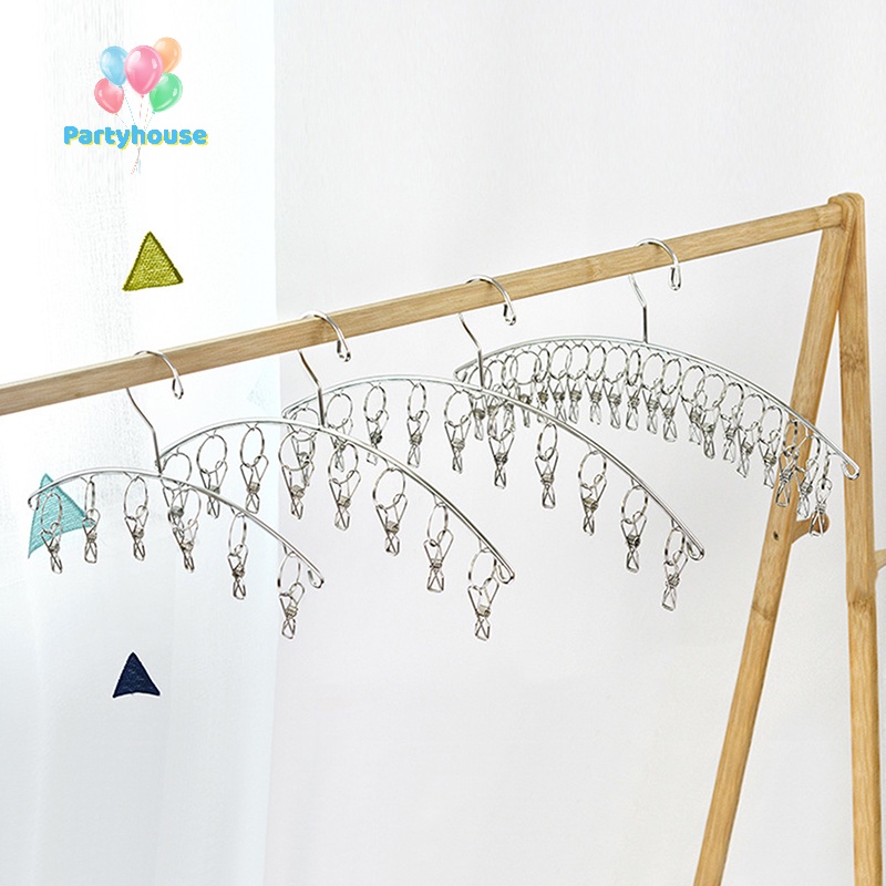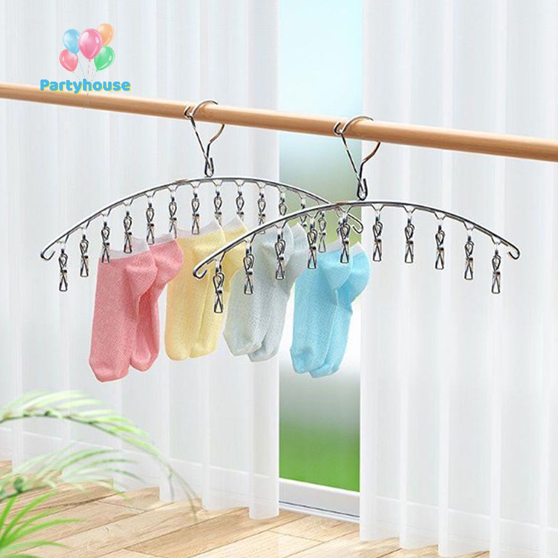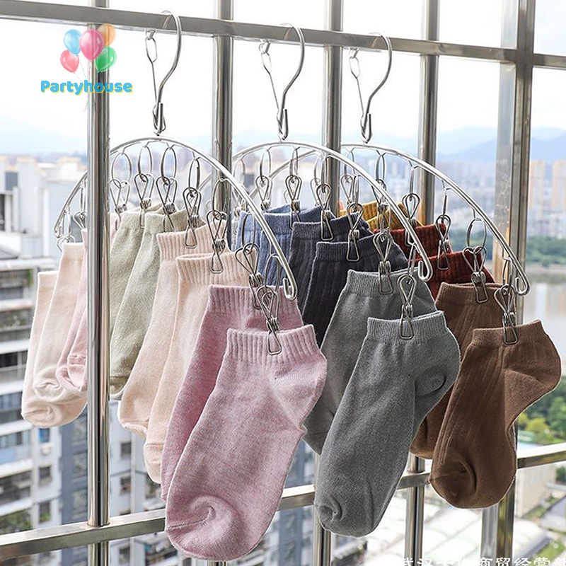 Uvig> ไม้แขวนเสื้อ สเตนเลส กันลม สําหรับตากถุงเท้า 6-20 ชิ้น