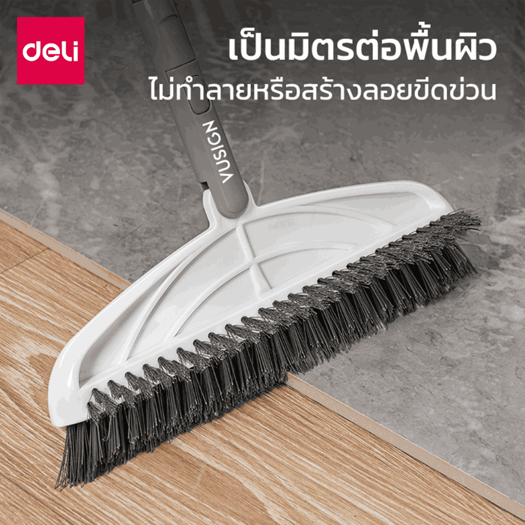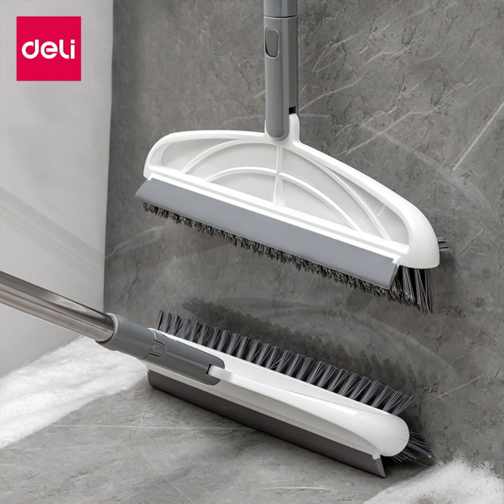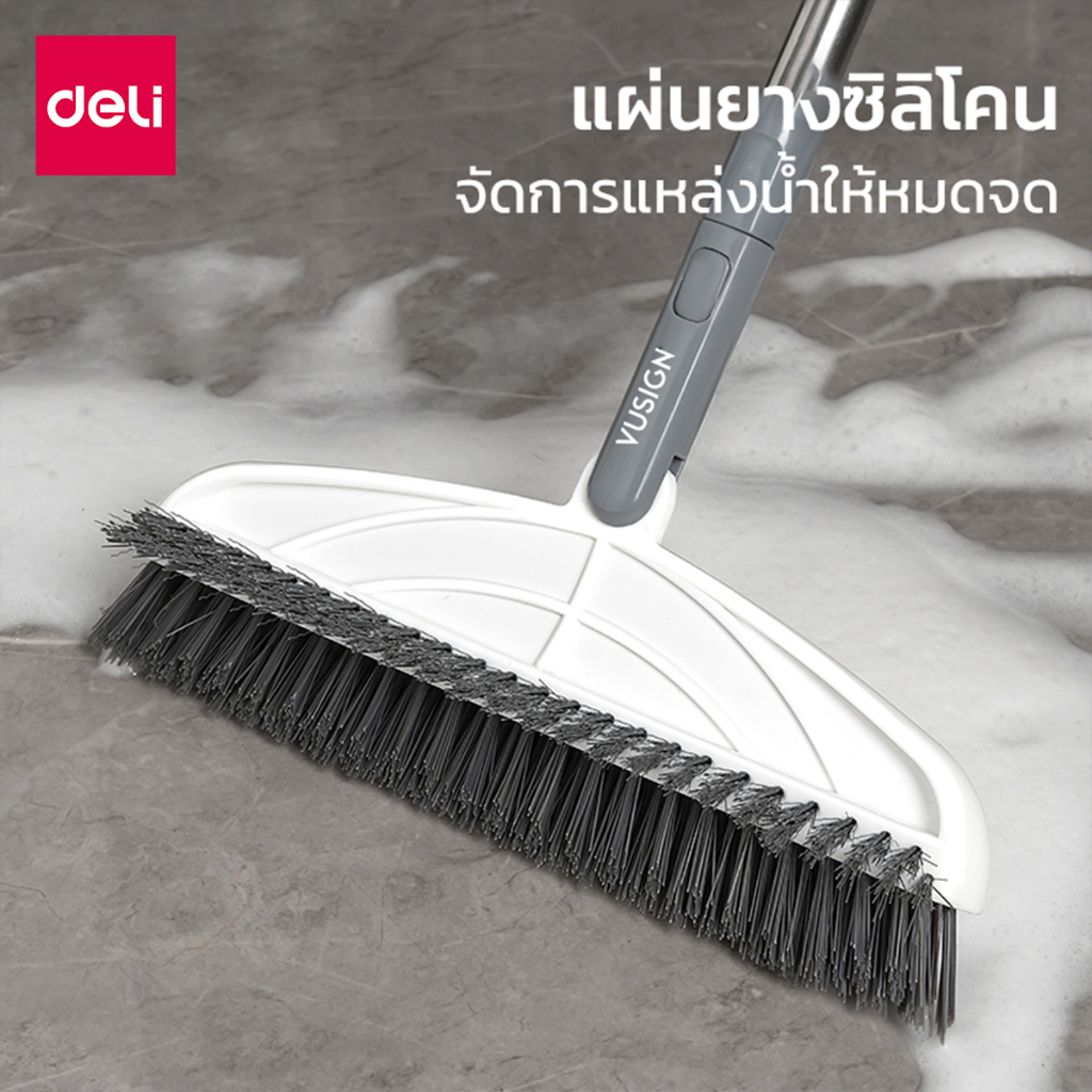 Deli แปรงขัดพื้น พร้อมที่รีดน้ำในตัว แปรงถูพื้น 2in1 แปรงขัดห้องน้ำ แปรงล้างพื้น แปรงทำความสะอาดพื้น Floor Brush