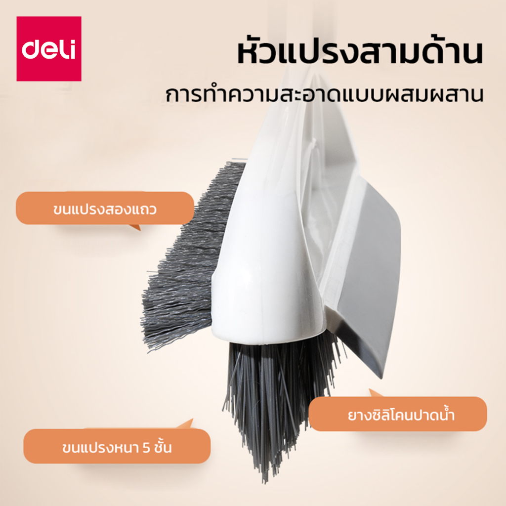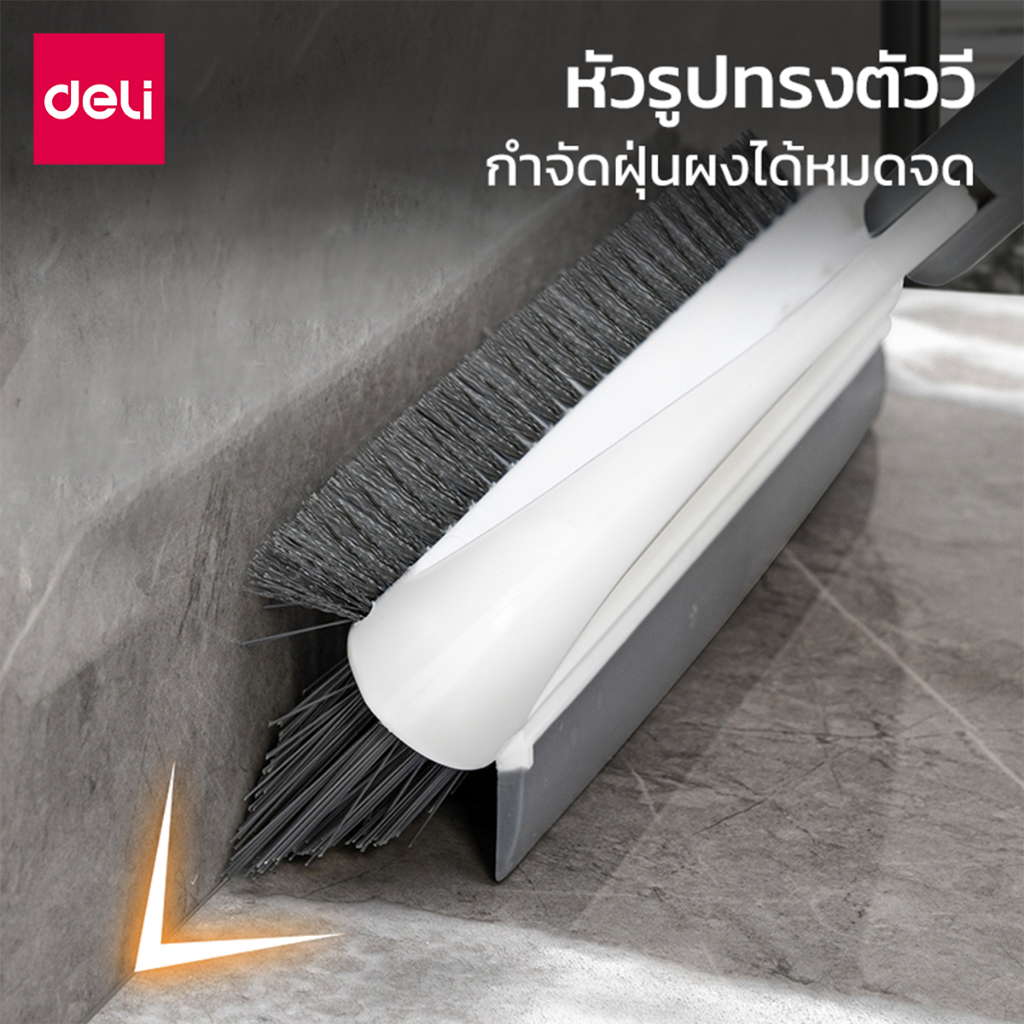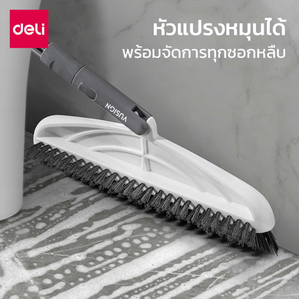 Deli แปรงขัดพื้น พร้อมที่รีดน้ำในตัว แปรงถูพื้น 2in1 แปรงขัดห้องน้ำ แปรงล้างพื้น แปรงทำความสะอาดพื้น Floor Brush