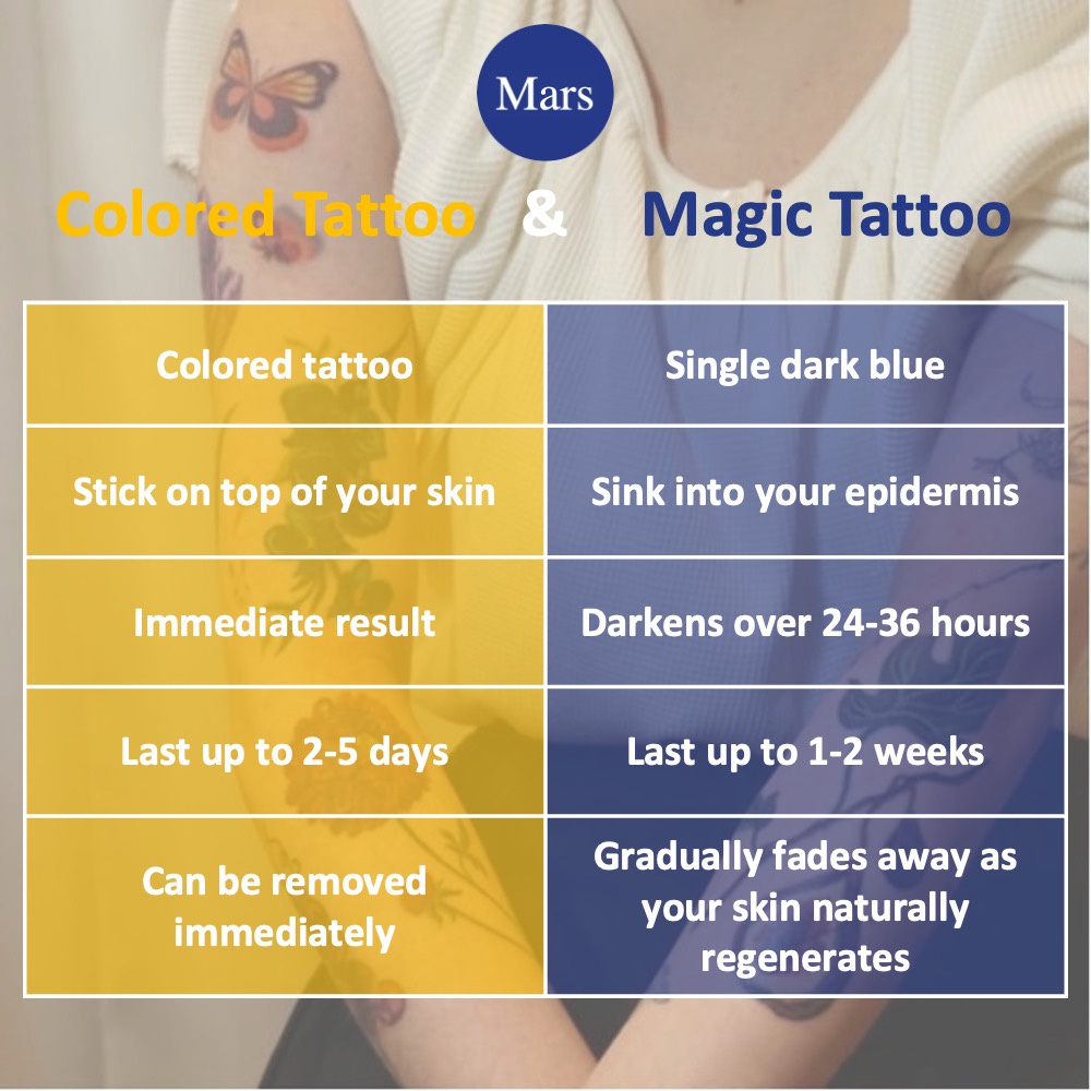 ซึ่งแตกต่างจากรอยสักอุณหภูมิส่วนใหญ่รอยสัก Mars ทำงานโดยการจมลงสู่ผิวหนังของคุณและไม่ติดอยู่ด้านบน ร
