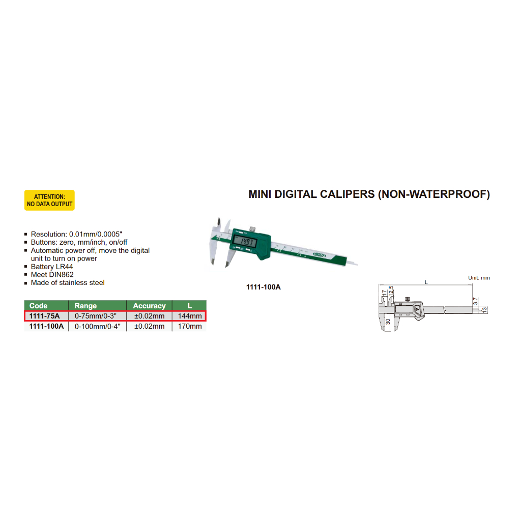 เวอร์เนียดิจิตอล-มินิ INSIZE ขนาด (0-75/0-3 ) รุ่น 1111-75A (Mini Digital Caliper) (**สินค้าใหม่ ภาพถ่ายจากสินค้าจริง**)