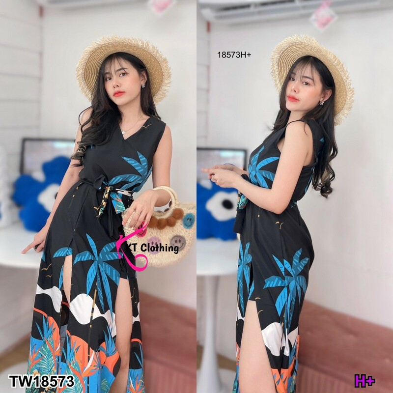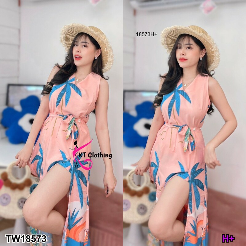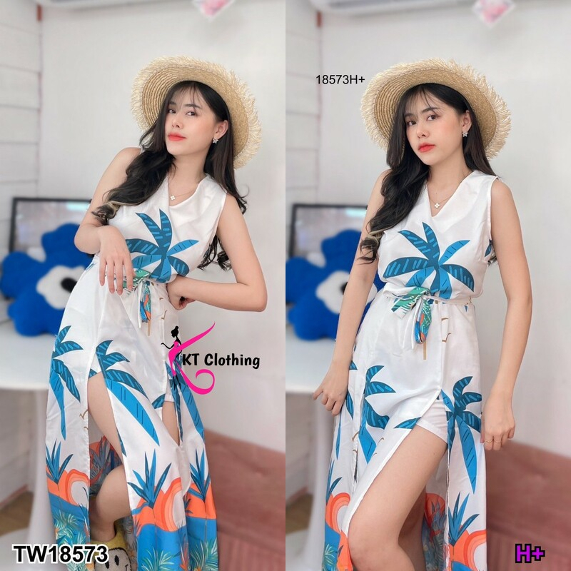 Jumpsuit จั๊มสูทขาสั้น คอวีแขนกุด ดีเทลแต่งผ่ายาวผ่าด้านหน้า ขาสั้นด้านใน มีซิปซ่อนด้านหลัง มีโบว์แยก 1 เส้น งานผ้าไหมอิตาลี ลายใบไม้ สวยเก๋เซ็กซี่ จริงๆจ้า