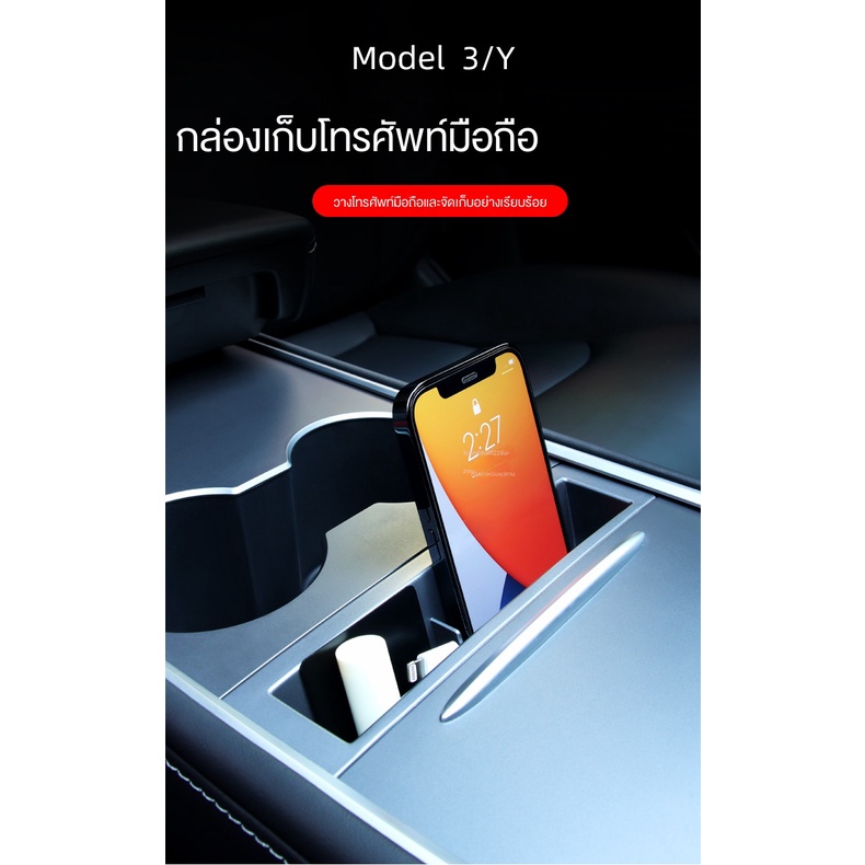 กล่องเก็บโทรศัพท์มือถือ ที่พักแขน อุปกรณ์เสริม สําหรับตกแต่งภายในรถยนต์ Tesla model3 Y