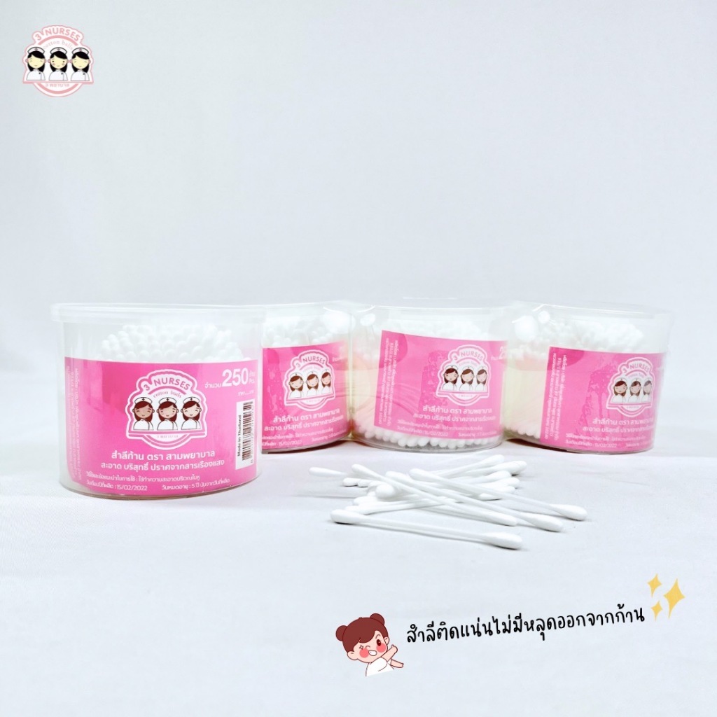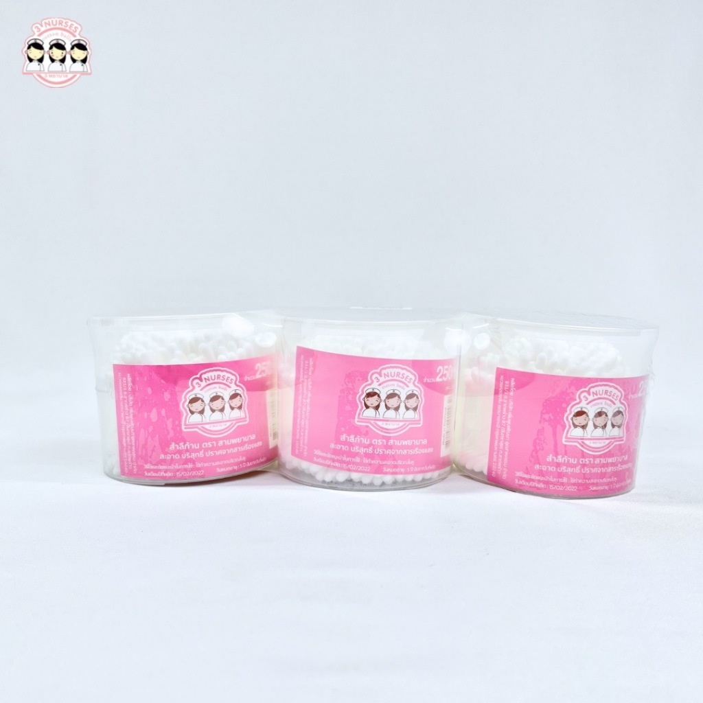 หยิบใส่ตะกร้าสำลีก้าน ตราสามพยาบาล 250 ก้าน(ยกโหล12กระปุก)061