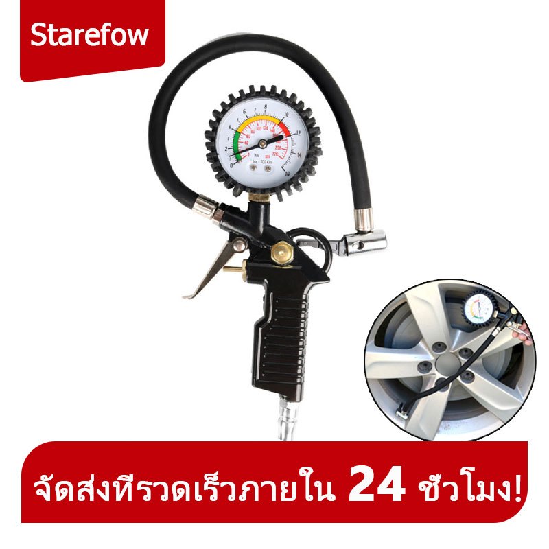 หัวเติมลมพร้อมเกจ์วัดลม อย่างดี 220 ปอนด์ สายเติมลมหัวทองแดง ยาว36cm