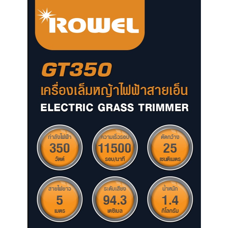 ROWEL เครื่องเล็มหญ้าไฟฟ้าสายเอ็น รุ่น RW-GT-GT350  เล็มหญ้าไฟฟ้า เครื่องเล็มหญ้า 220v