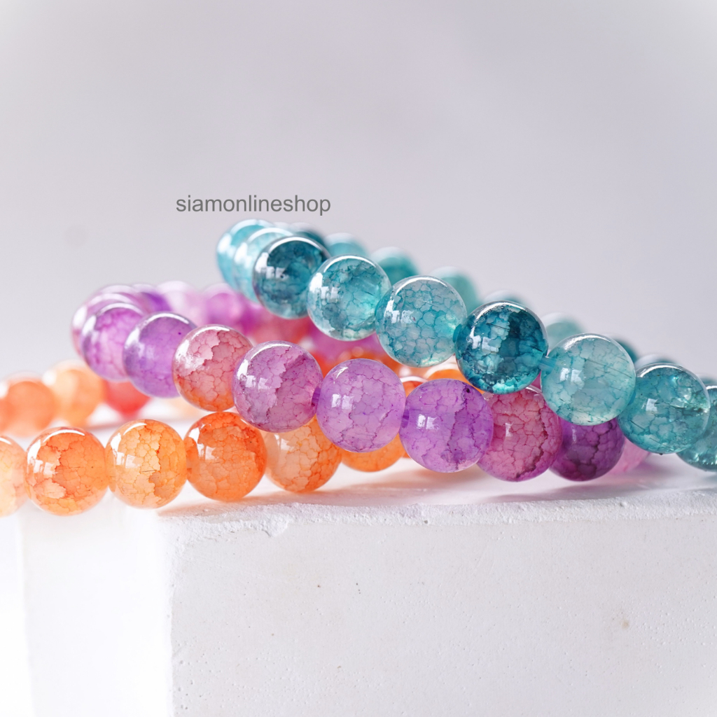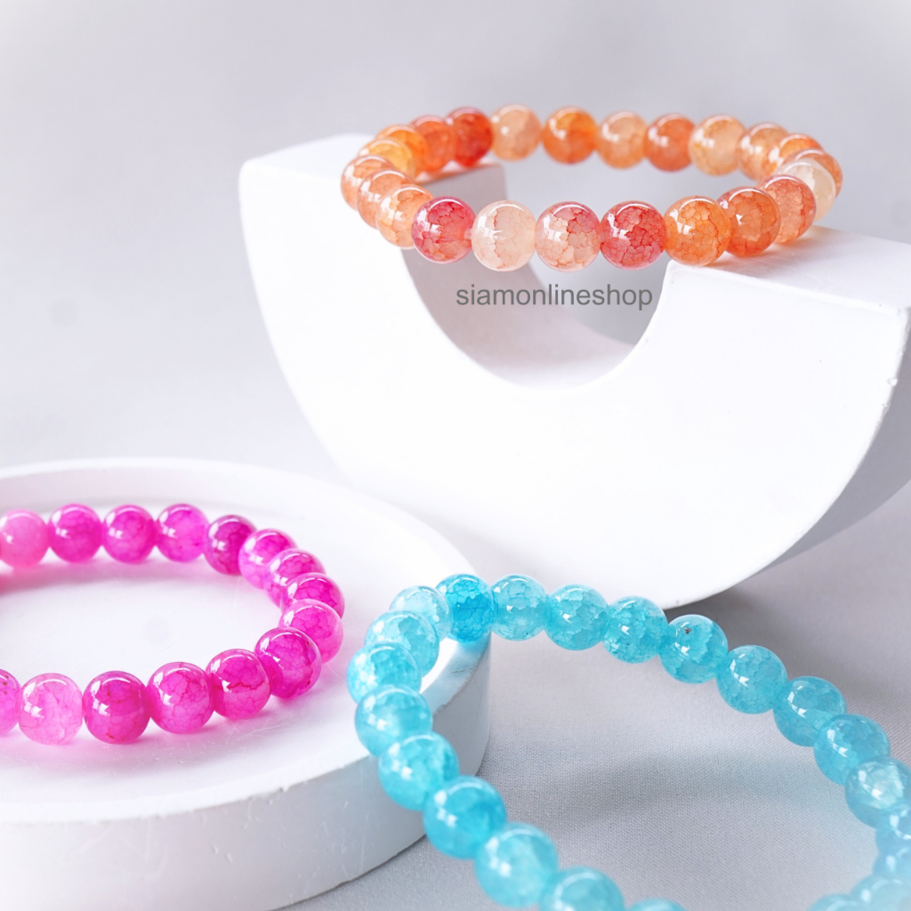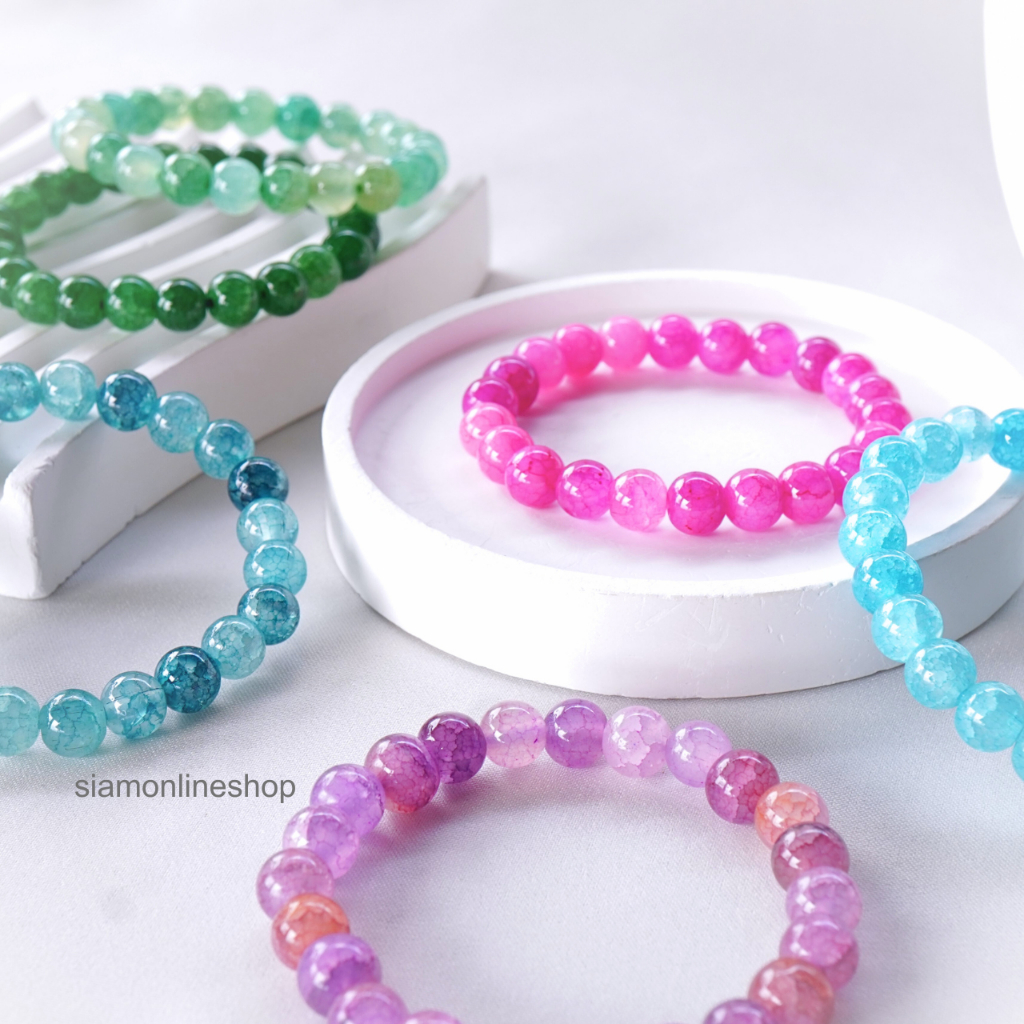 CRACKED AGATE หินเกล็ดมังกร หินสี ขนาด 8 มม. (เลือกสีได้) สร้อยข้อมือหินนำโชค by siamonlineshop