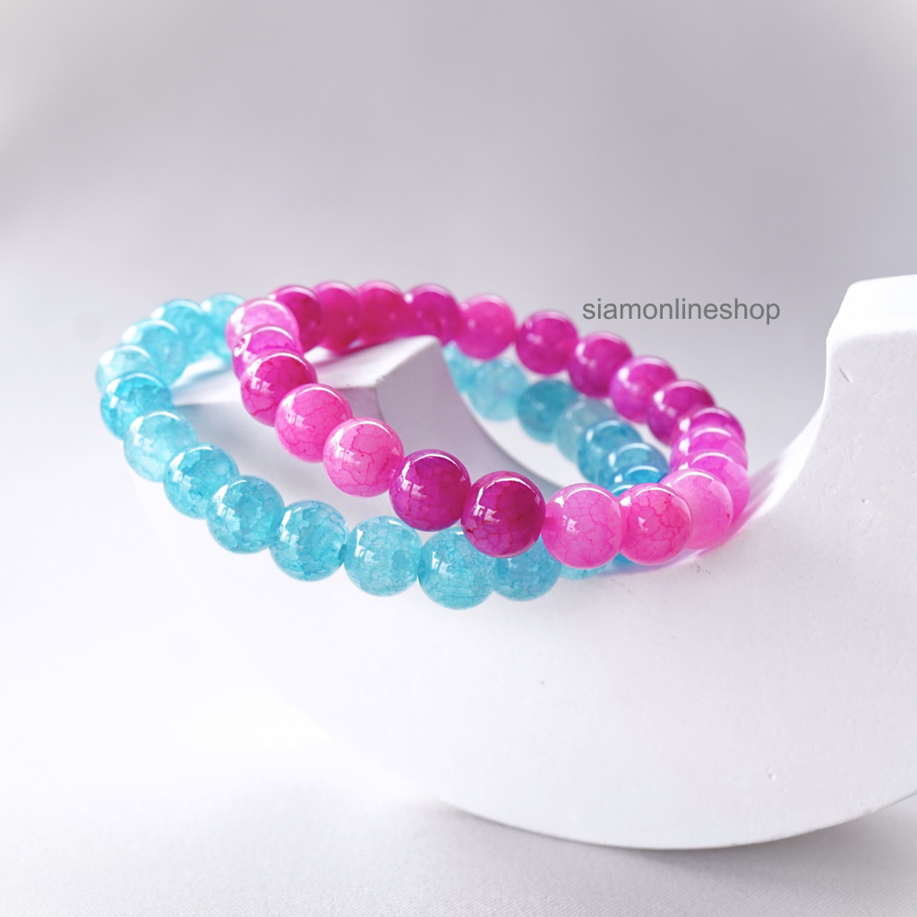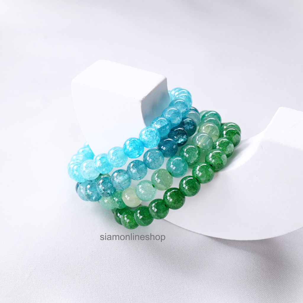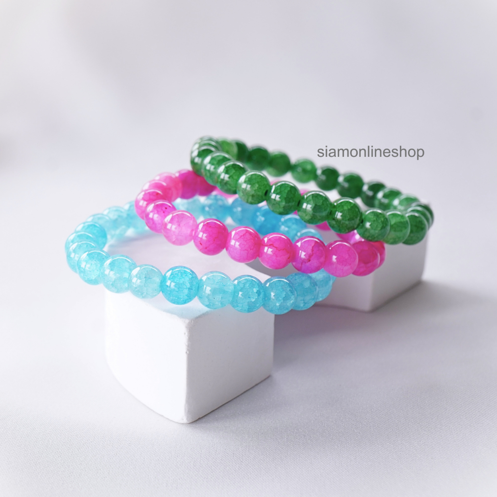 CRACKED AGATE หินเกล็ดมังกร หินสี ขนาด 8 มม. (เลือกสีได้) สร้อยข้อมือหินนำโชค by siamonlineshop
