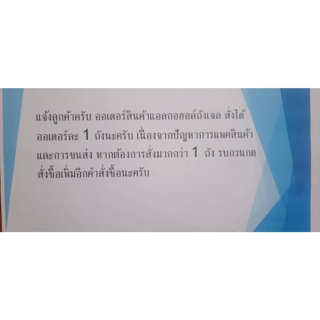 ลูกค้าที่ต้องการสั่งสินค้ามากกว่า 1 ถัง รบกวนสั่งสินค้าแยกเป็นออเดอร์ละ 1 ถังนะครับ เนื่องจากไม่สะดวกในการขนส่ง