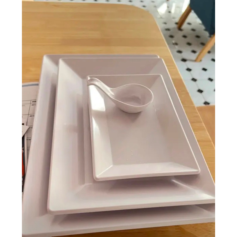 หยิบใส่ตะกร้าจานเปลเหลี่ยมเมลามีนแท้ 100% จานสเต็ก จานปลา จานสวยสำหรับใส่อาหาร มีให้เลือก4 ขนาด 9นิ้ว/11นิ้ว/13นิ้ว/15นิ้ว