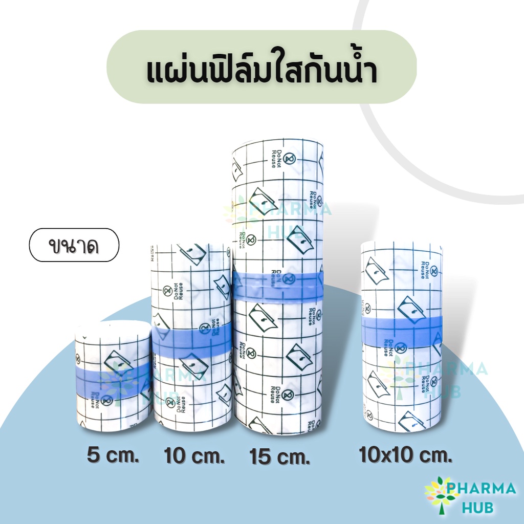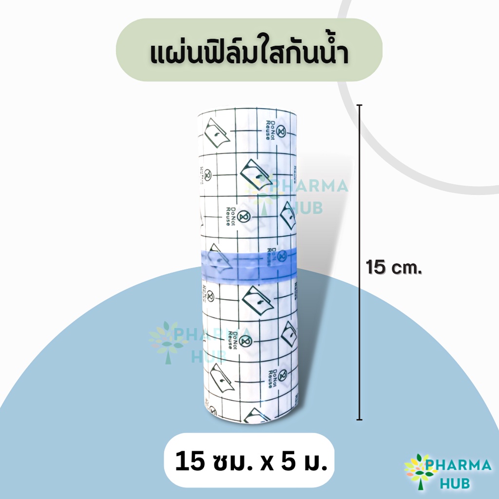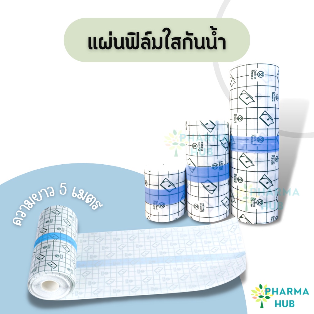แผ่นฟิล์มใสสำหรับปิดแผล / ปิดทับผ้าก็อซ กันน้ำได้ แบบม้วน สามารถตัดแบ่งใช้งานได้ ความยาว 5 เมตร กว้าง 5, 10 และ 15 ซม.