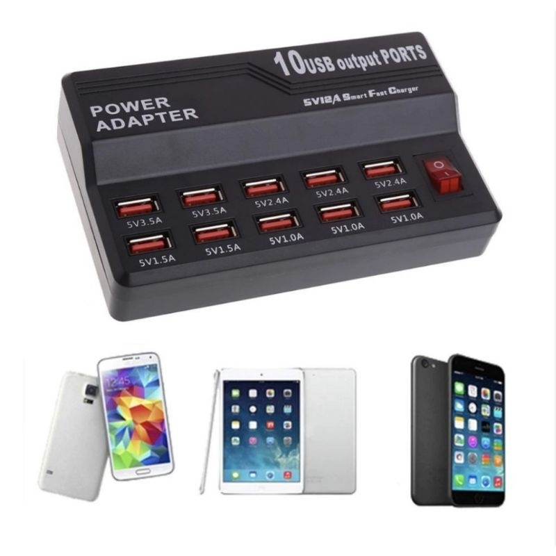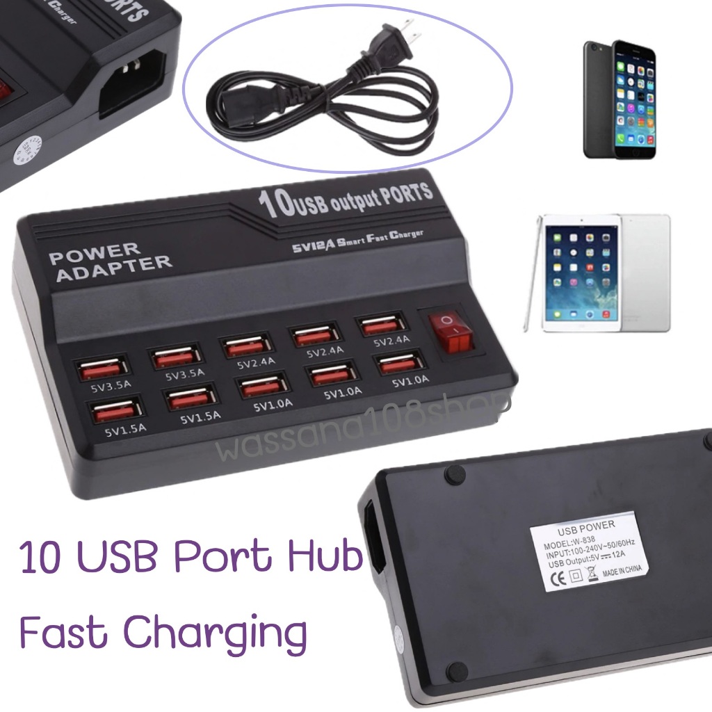 10 USB Port Hub Fast Charging Station Wall Travel Desktop Charger Power Adapter+AC Power