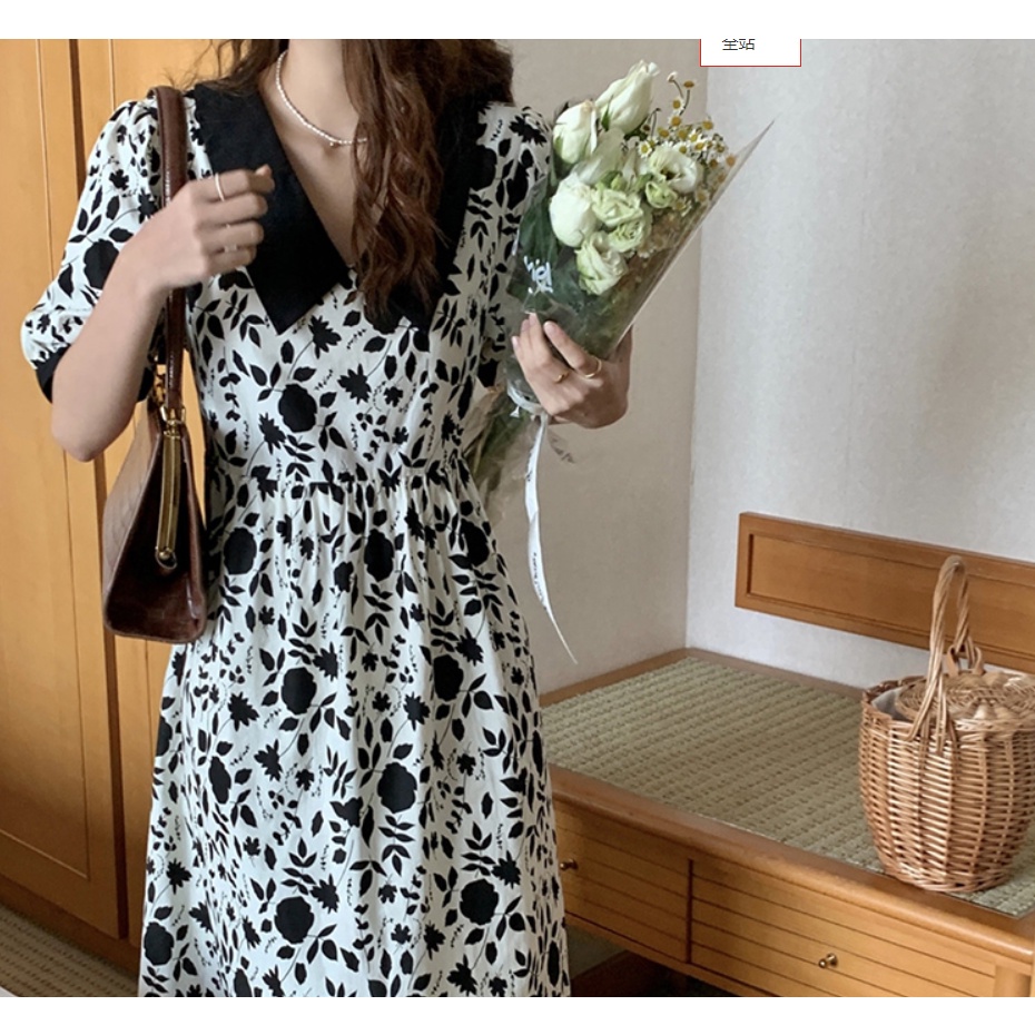 Suxi ชุดเดรสยาว คอวี แขนพอง ลายดอกไม้ สไตล์วินเทจ แฟชั่นฤดูร้อน สําหรับผู้หญิง