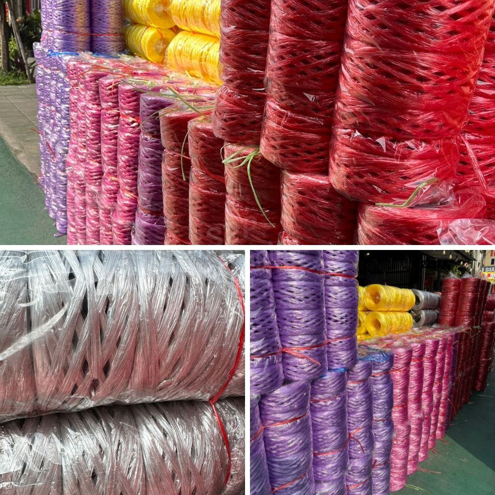 เชือกฟางพลาสติก หน้ากว้าง2นิ้วเมื่อกางออกมา เหนียว สีสวย ฟูสวย จากโรงงานโดยตรง