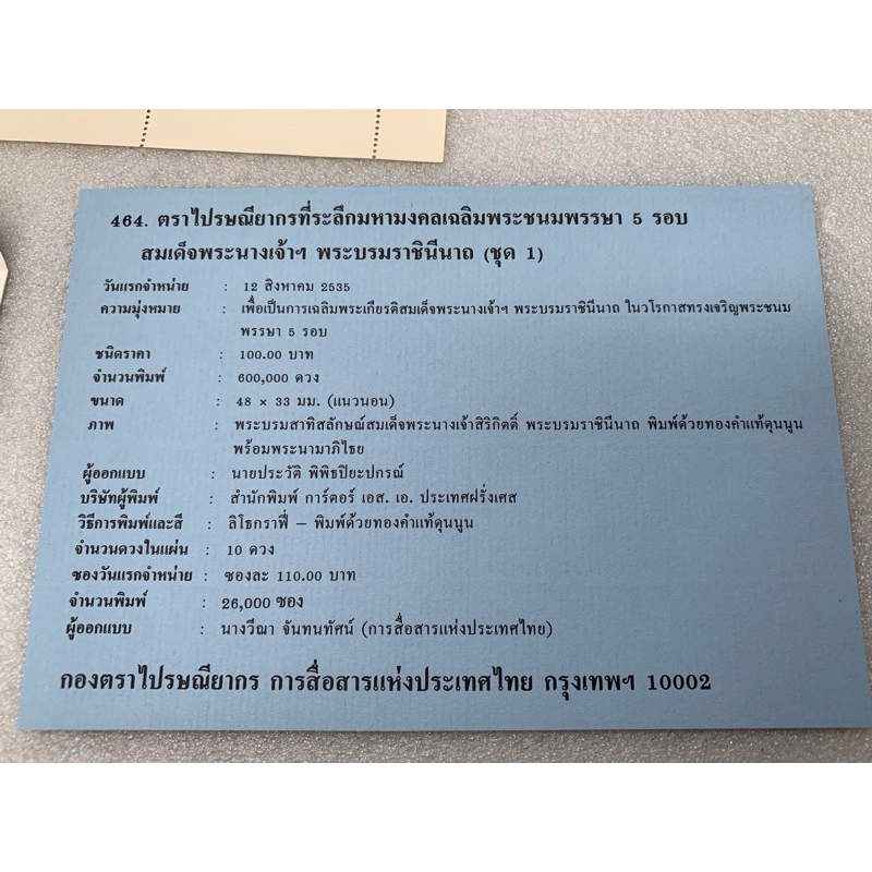 แสตมป์และซองที่ระลึกมหามงคลเฉลิมพระชนมพรรษา ๕ รอบราชินี (ชุด1) ปี2535
