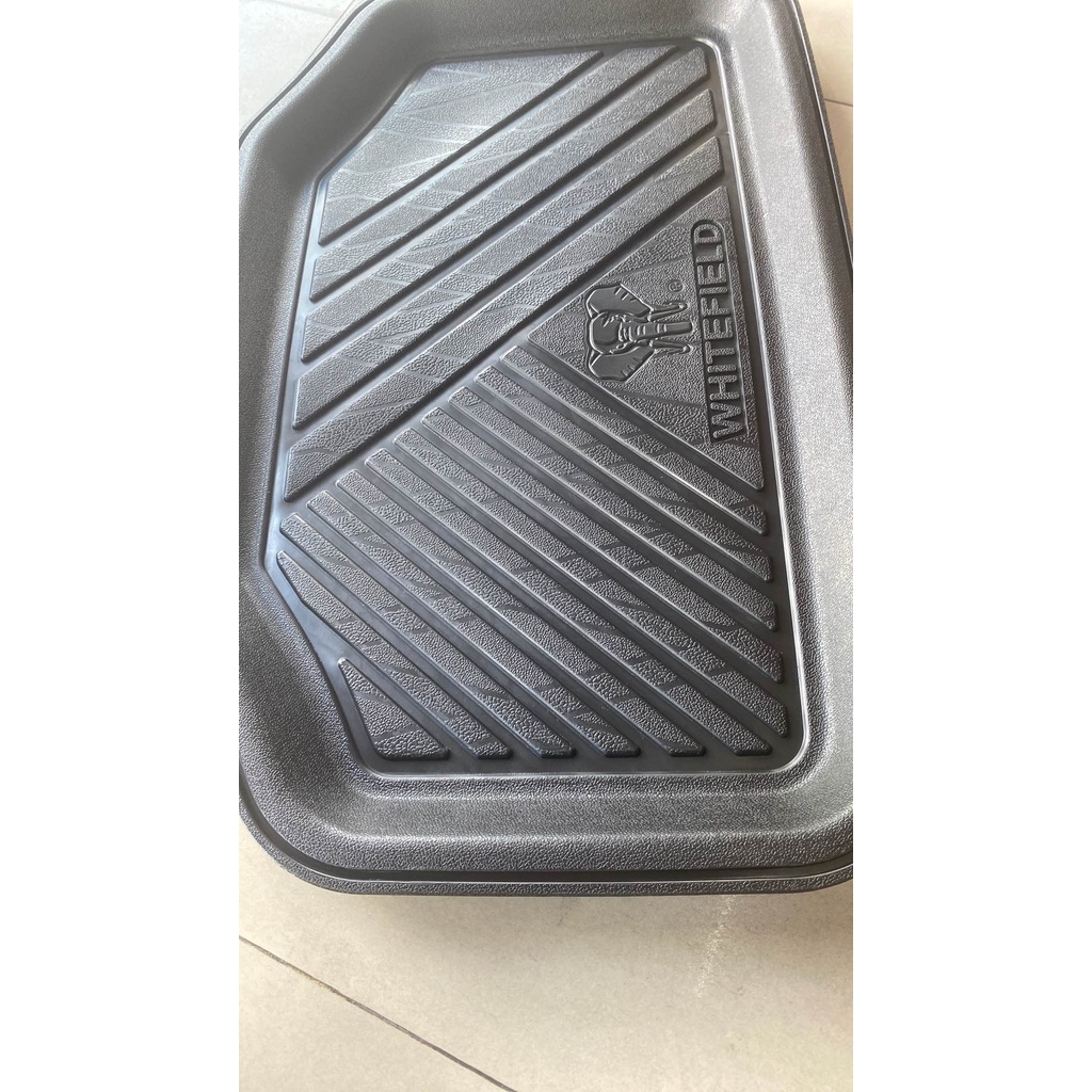 ถาดยางปูพื้นในรถยนต์ วัสดุผลิตจากยางธรรมชาติ 100% มีความยืดหยุ่นสูง ทนความร้อนสูง ดักและกักเก็บสิ่งสกปรกได้เป็นอย่างดี และป้องกันน้ำ 100% สามารถนำไหใช้ได้ทั้งรถเก๋งรุ่นเก่า และรถกระบะ ตอนครึ่ง หรือ Cab พื้นผิวไม่เรียบ มีการกัดลายเม็ดทรายบนพื้นผิวปูพื้น ทำ