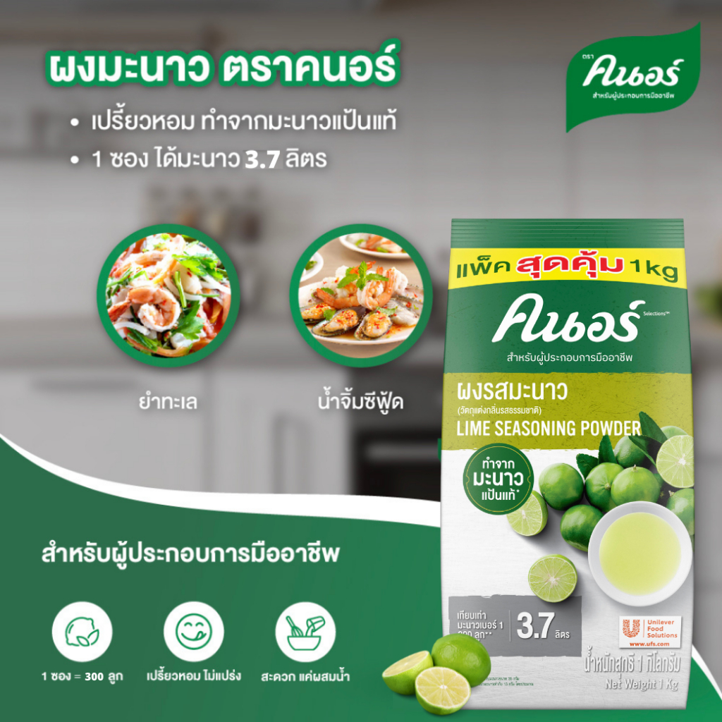 ผงมะนาวคนอร์ 1 กิโลกรัม ใช้แทนมะนาวสดผง ทำน้ำมะนาว 3.7 ลิตร ผงมะนาวแท้100% ผงมะนาวชง ผงมะนาวคะนอร์