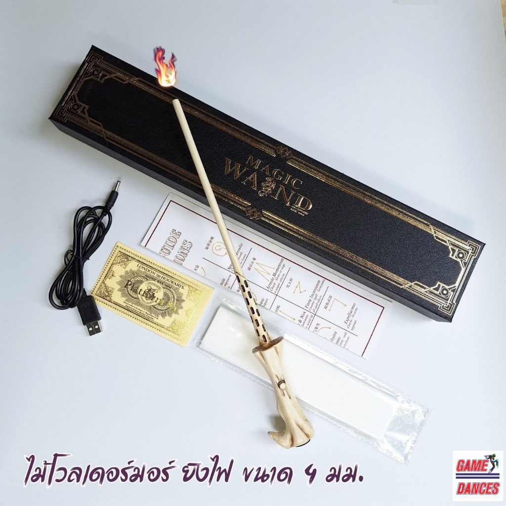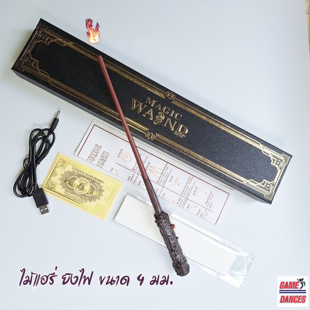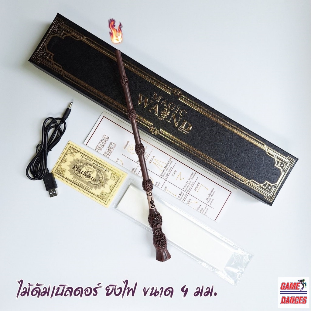 ไม้กายสิทธิ์พ่นไฟ ไม้กายสิทธิ์ยิงไฟ เฮอไมโอนี่ แฮรี่ ดัมเบอร์ดอ ขนาด 4มม. ไม้ยาวประมาณ 33 ซม.