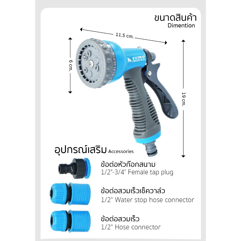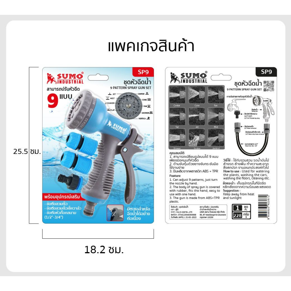 หัวฉีดน้ำสายยาง ชุดหัวฉีด รุ่น SP9 หัวฉีดน้ำ 9 รูปแบบ (แถมฟรีอุปกรณ์พร้อมใช้งาน) SUMO