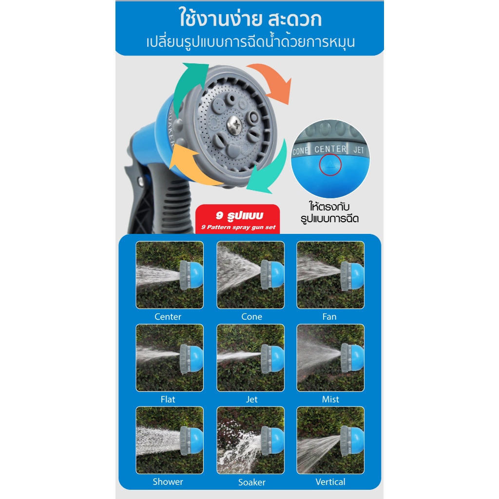 ชุดหัวฉีดน้ำ 9 รูปแบบ ใช้สำหรับ งานสวน รดน้ำต้นไม้ ล้างรถ ล้างพื้น ทำความสะอาดสิ่งสกปรก และงานอเนกประสงค์ทั่วไป