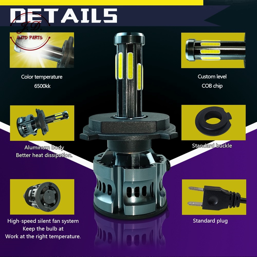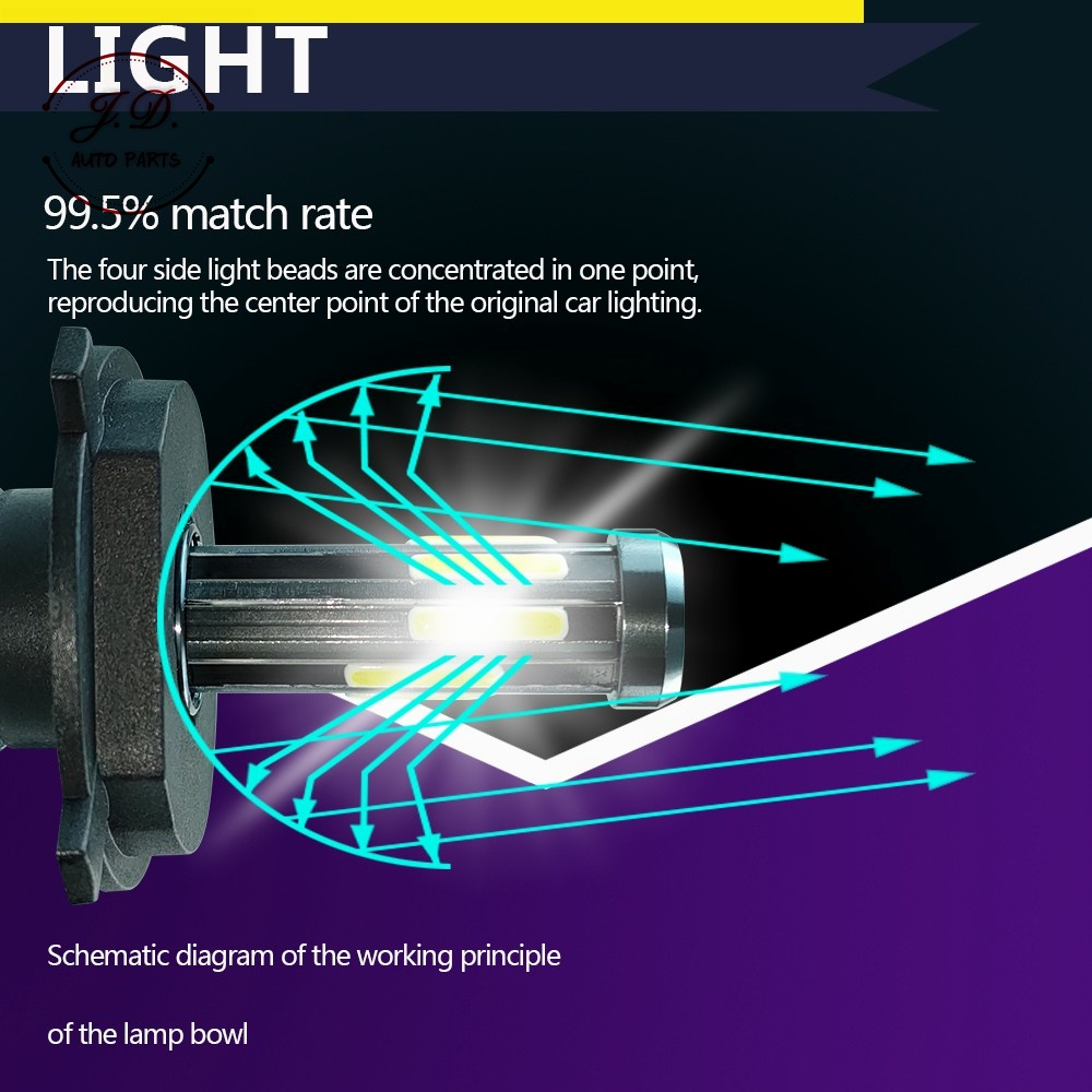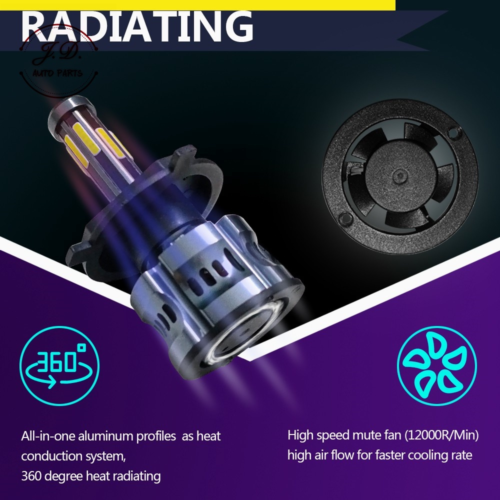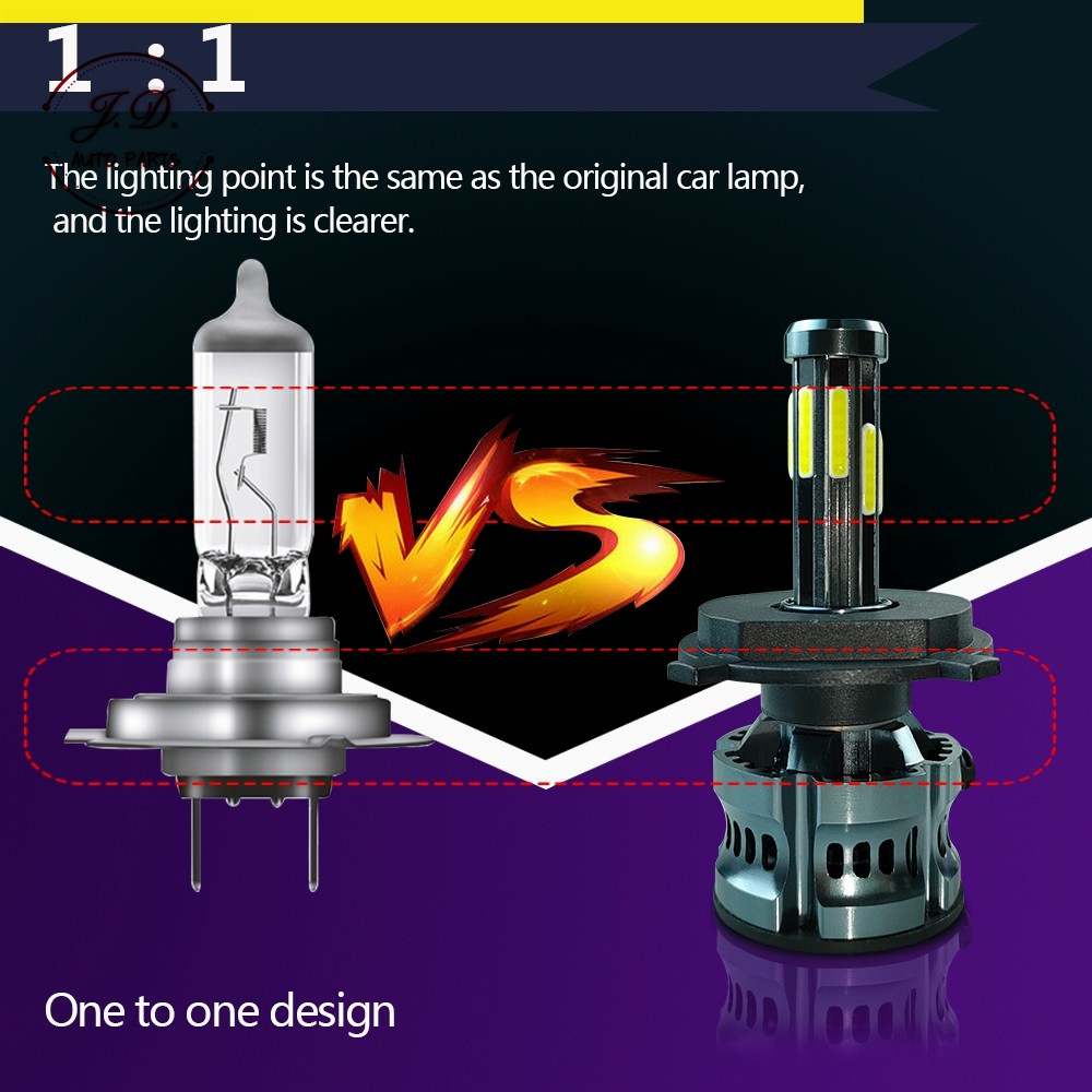 1คูู่ ไฟหน้ารถยนต์ D8 LED สีขาว 6500K 18000LM 120W สำหรับไฟหน้า+ไฟตัดหมอก ทุกรุ่น H1/ H3/ H4/ H7/ H11/ HB3/HB4