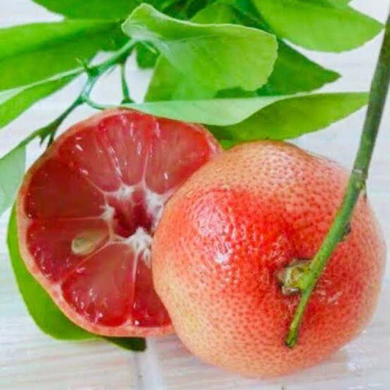 ต้นมะนาวชมพู เสียบยอด ผลเป็นสีเหลืองอมชมพูหรืออมแดง เปลือกบางเนื้อในเป็นสีชมพู เมล็ดน้อยน้ำเยอะ รสชาติเปรี้ยวกลิ่นหอม
