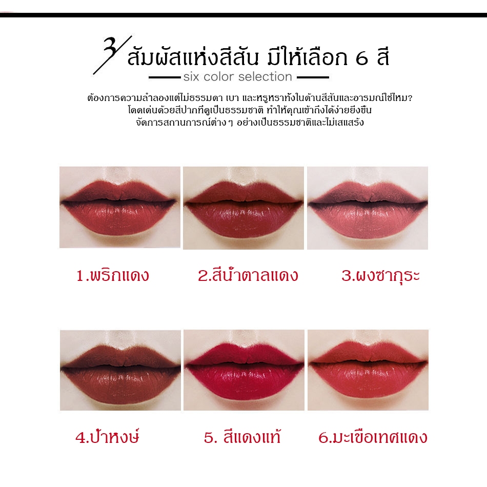 ● ของแท้ 100%✨ลิปจูบไม่หลุด ลิปสติก แบบกันน้ำ Lipstick # ติดทนนาน (เครื่องสำอาง, ลิปสติก) มีให้ทั้งหมด 6 สี