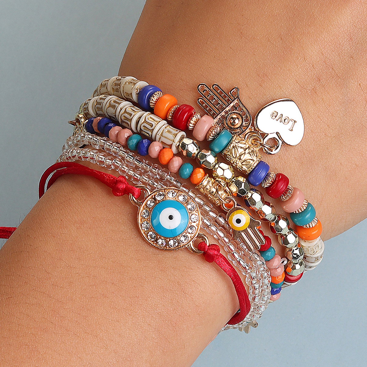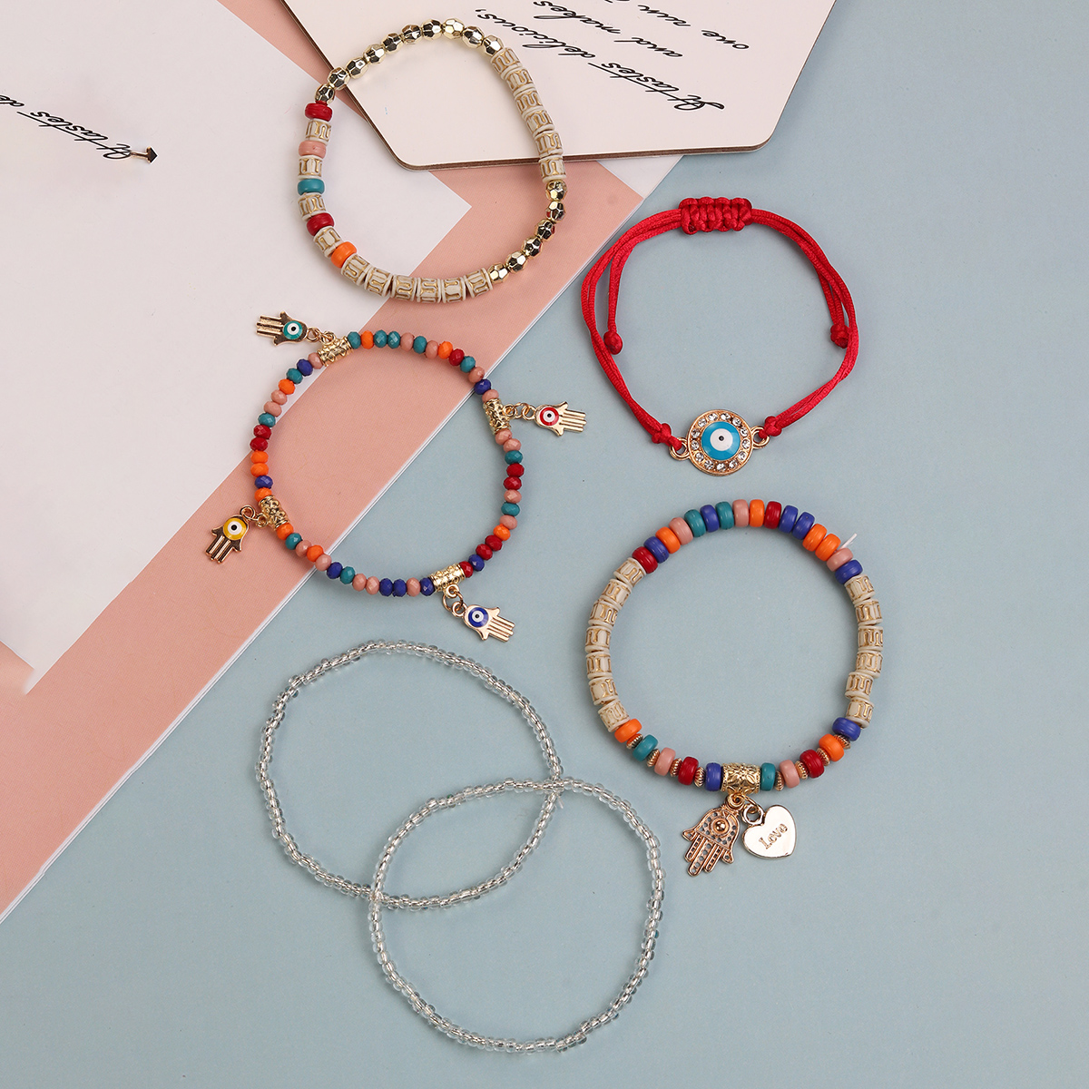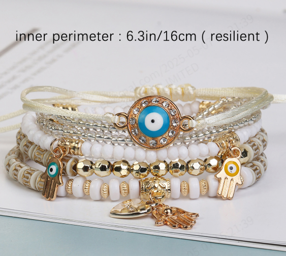 สร้อยข้อมือลูกปัดยืดหลายชั้นโบฮีเมียนวางซ้อนกันได้สร้อยข้อมือลูกปัดชั้นปรับได้ผู้หญิงกำไลข้อมือเครื่องประดับ Boho