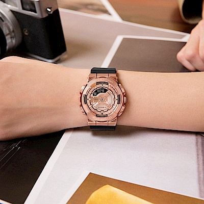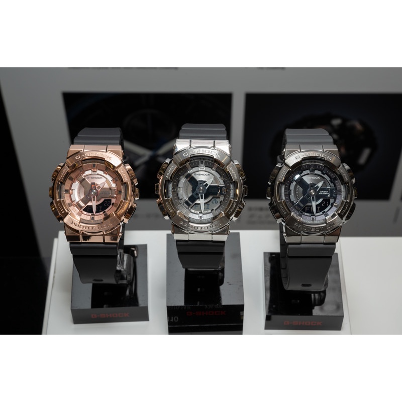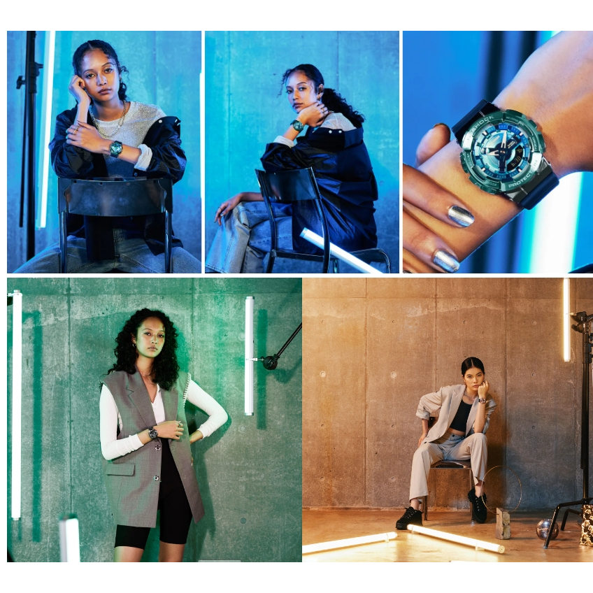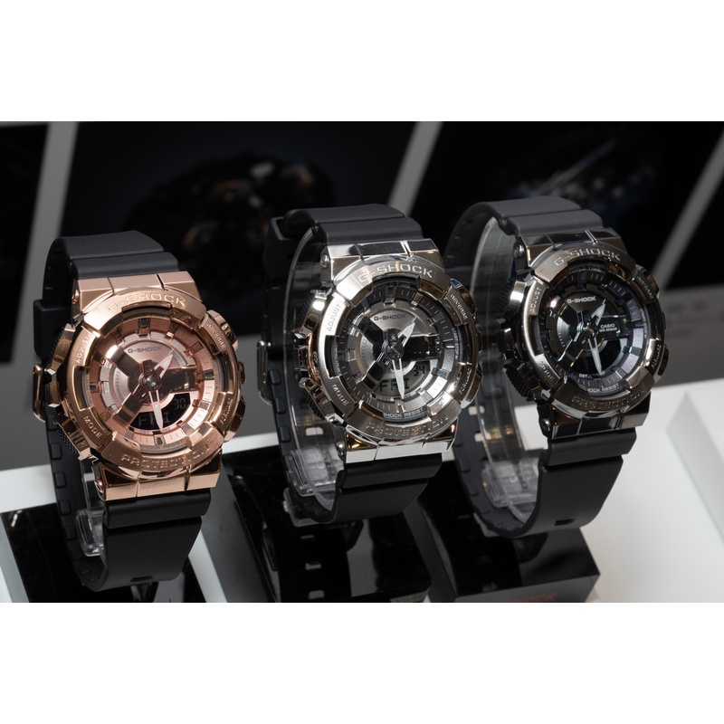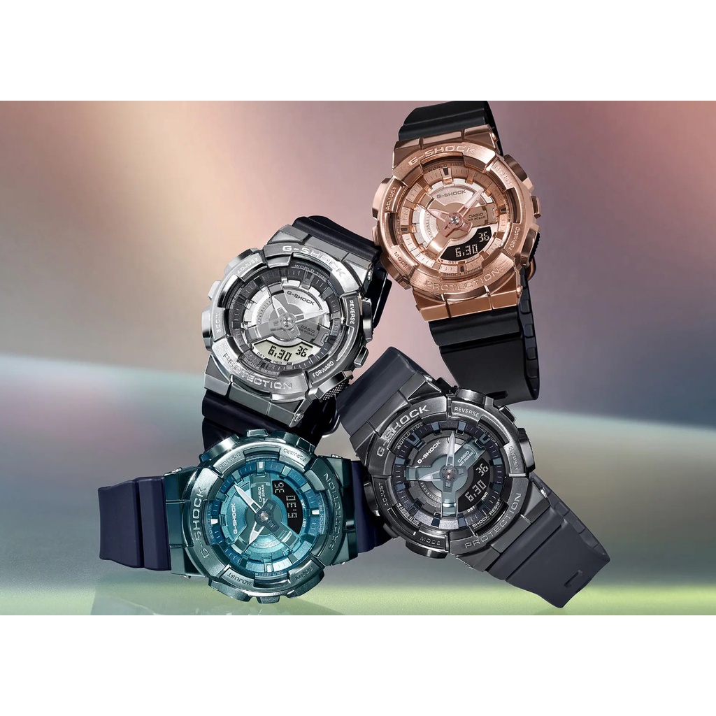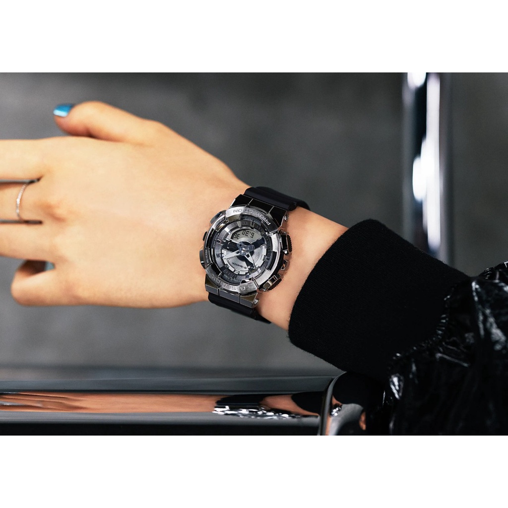 นาฬิกา G-SHOCK GM-110 ที่หุ้มด้วยโลหะและสวมสบาย ผสมผสานระหว่างระบบอะนาล็อกดิจิตอลยอดนิยม โดยตอนนี้มีโครงสร้างที่บางและกะทัดรัดยิ่งขึ้น หน้าปัดที่มีความลึกและมิติอันน่าทึ่งสร้างขึ้นด้วยการจัดเรียงส่วนประกอบ 3 มิติที่มีรายละเอียดอันประณีตหลายชั้น เมื่อจับคู