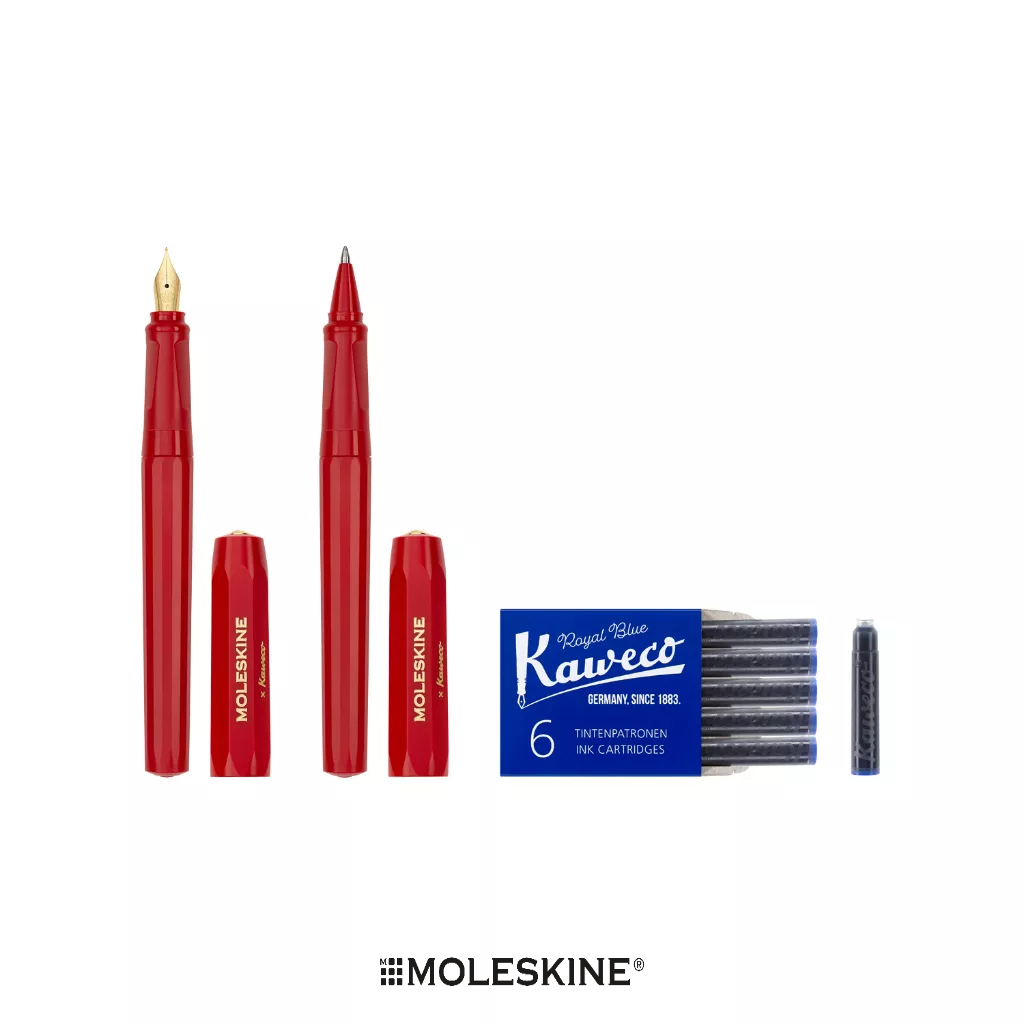 Moleskine x Kaweco ชุดปากกาหมึกซึม (สีแดง M nib, สีดำ & สีน้ำเงิน F nib) และปากกาลูกลื่นบอล 1.0 มม.