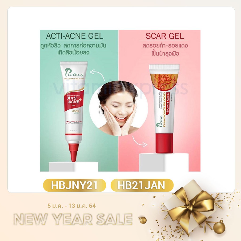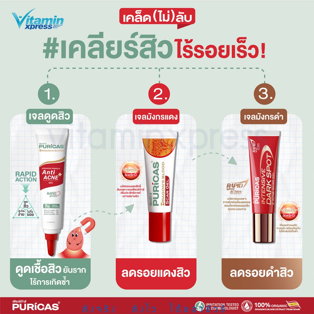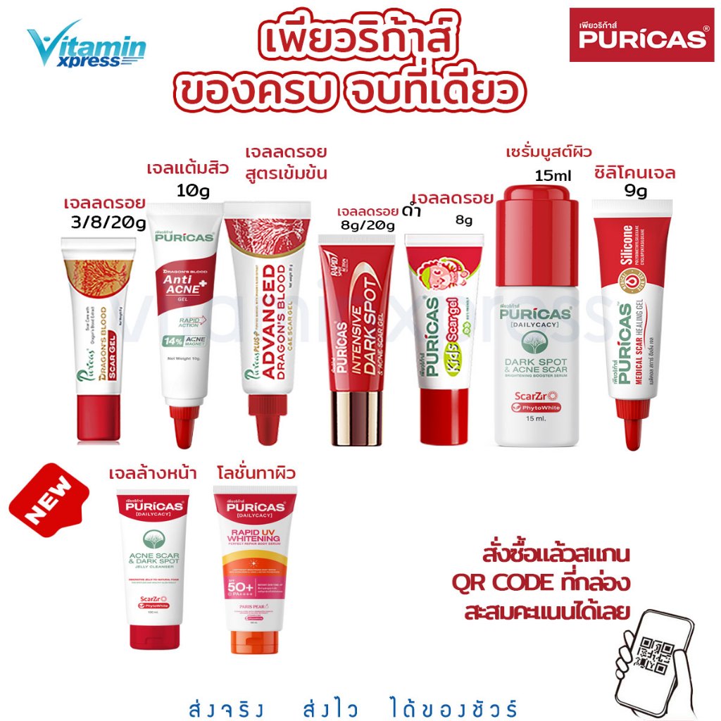1. Puricas dragon blood scar gel 3/8/20 กรัม ลดรอยสิว รอยแดง