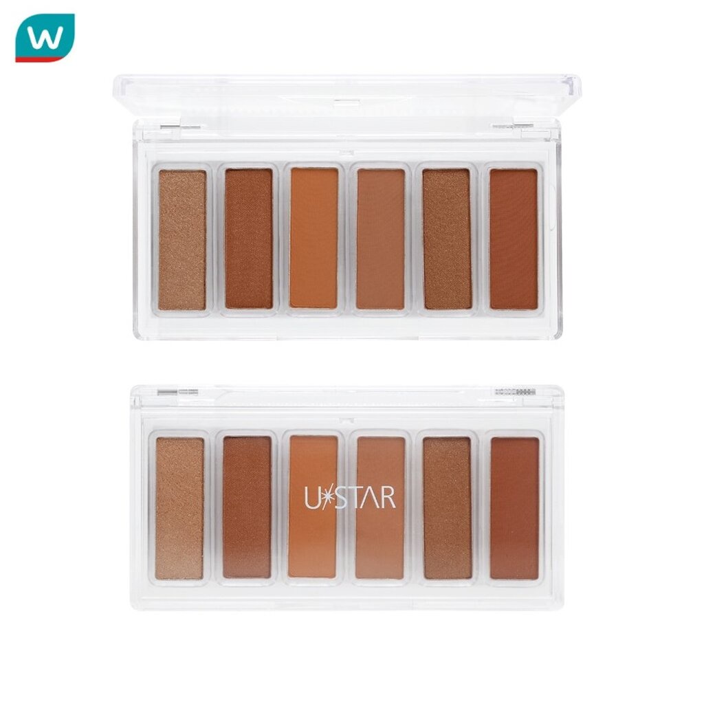 ยูสตาร์ นีโอ มัลติ อาย คัลเลอร์ พาเลท ชิค บราวน์ อายแชโดว์พาเลท 6 เฉดสี โทนน้ำตาลคาราเมล ไปจนถึงโทนสีน้ำตาลเข้ม อายแชโดว์ 6 เฉดสี ใน 1 ตลับที่ผสมผสานเฉดสีกันอย่างลงตัวด้วยเนื้อแมท ที่ให้สีสันคมชัดติดทน และเนื้อชิมเมอร์ให้ประกายสดใส เกลี่