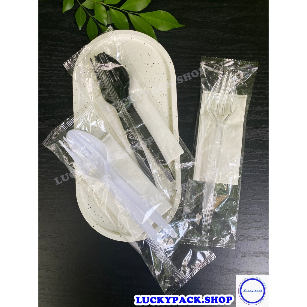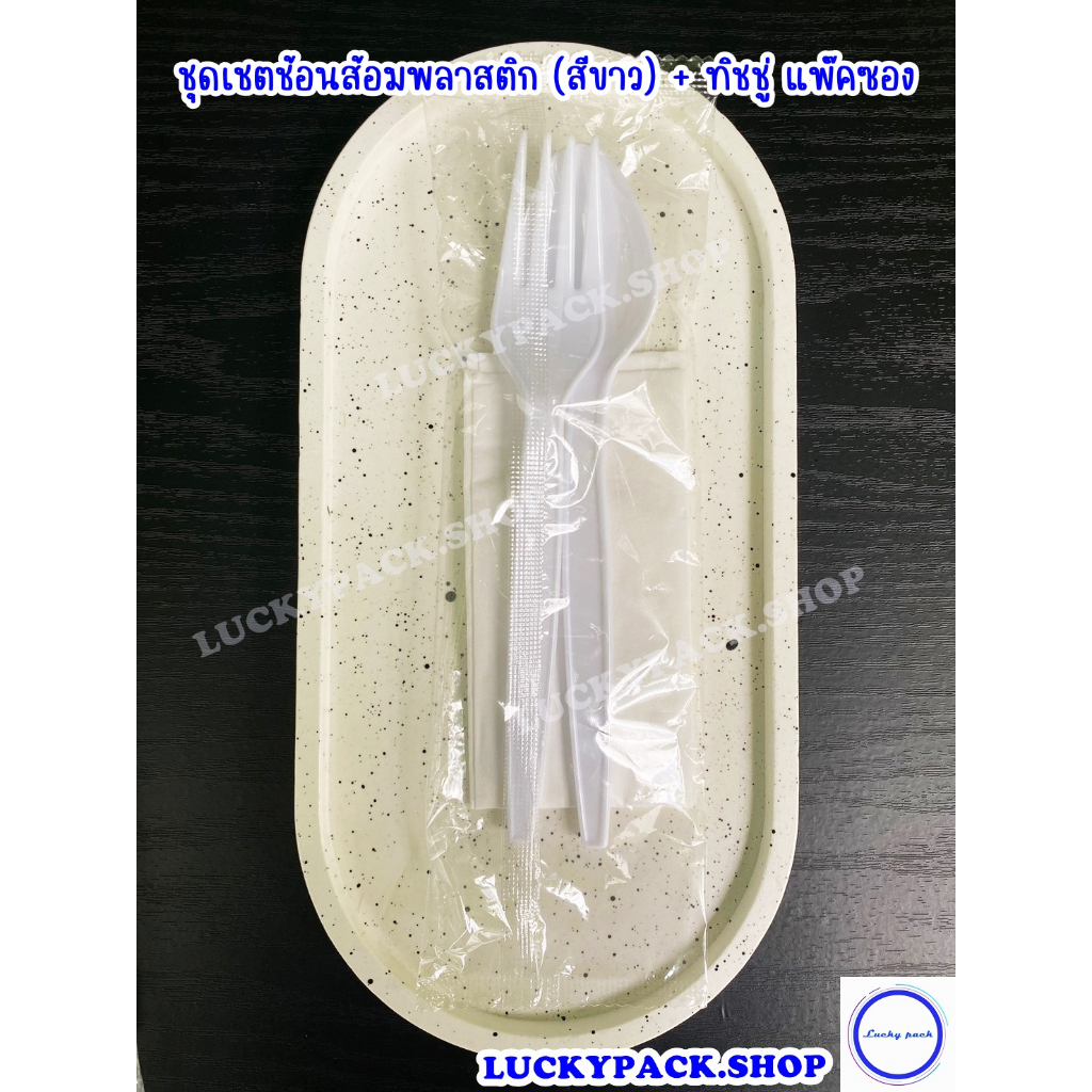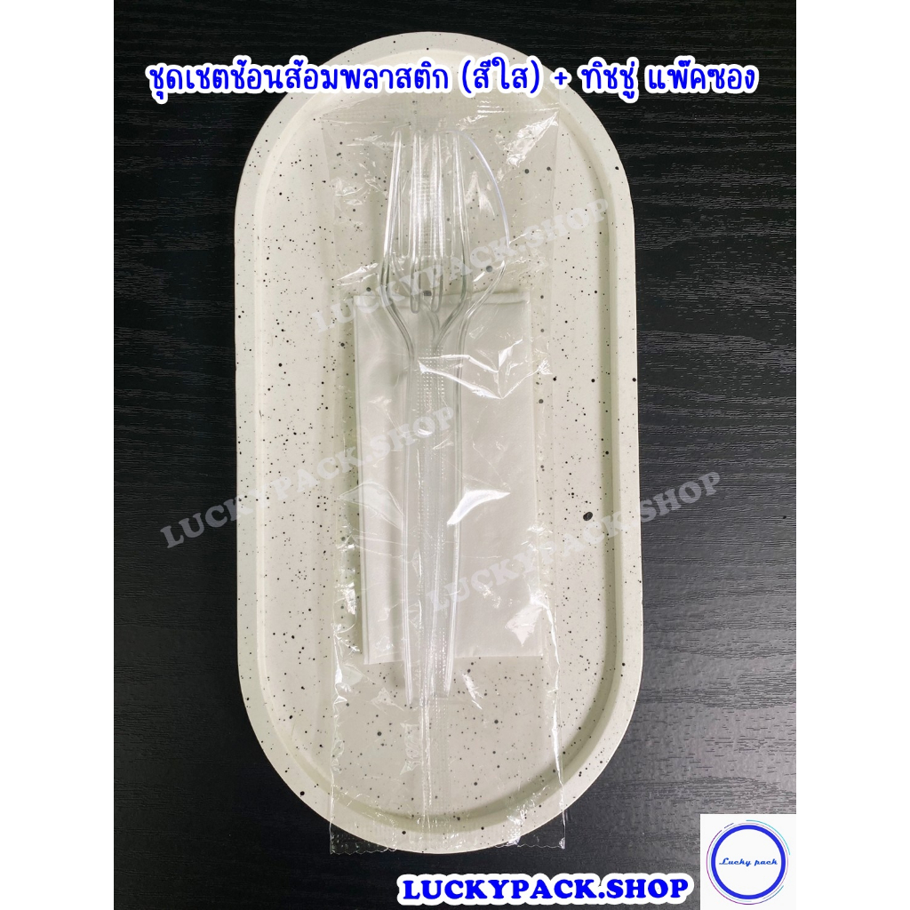 *** ชุดเซตช้อน+ส้อมพลาสติกยาว 16 ซม.+ ทิชชู่ ห่อฟิล์ม OPP แบบแพ๊ค 3 ชิ้น จำนวน 50 ชุด **สินค้ามีพร้อมส่ง ไม่ต้องรอนาน ** ***