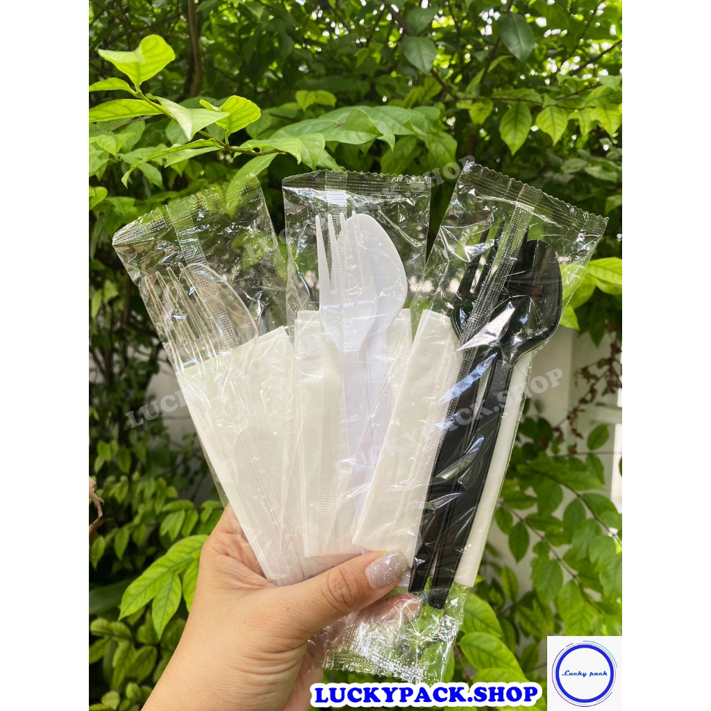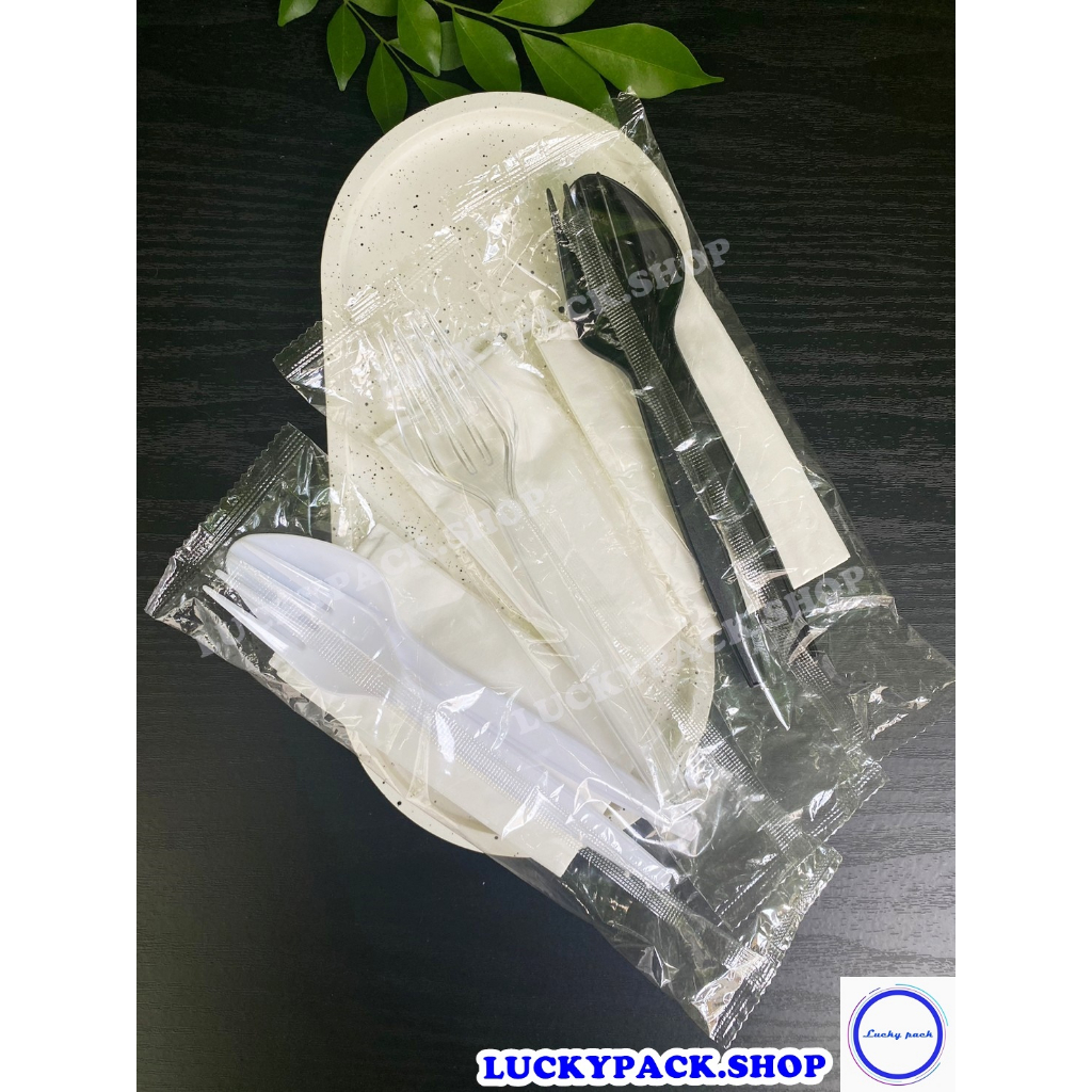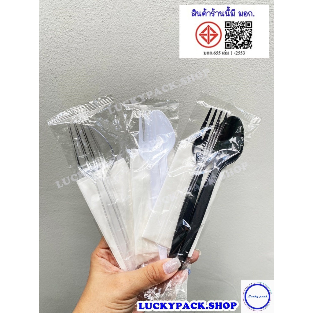 *** ชุดเซตช้อน+ส้อมพลาสติกยาว 16 ซม.+ ทิชชู่ ห่อฟิล์ม OPP แบบแพ๊ค 3 ชิ้น จำนวน 50 ชุด **สินค้ามีพร้อมส่ง ไม่ต้องรอนาน ** ***