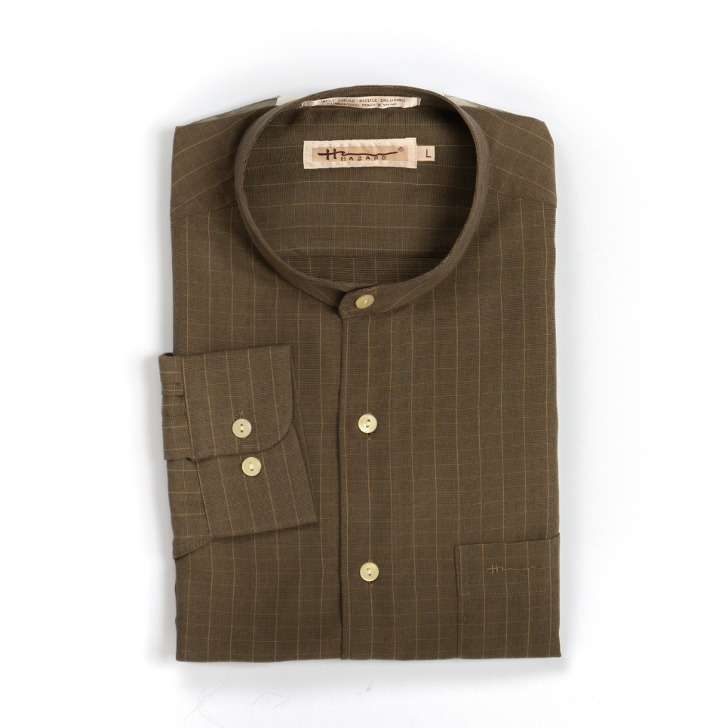HAZARD เสื้อคอจีนแขนยาวลายสก็อต ผ้า Micro Filament(ไมโครฟิลาเมนท์) รุ่น HZT5680324 สีเบท