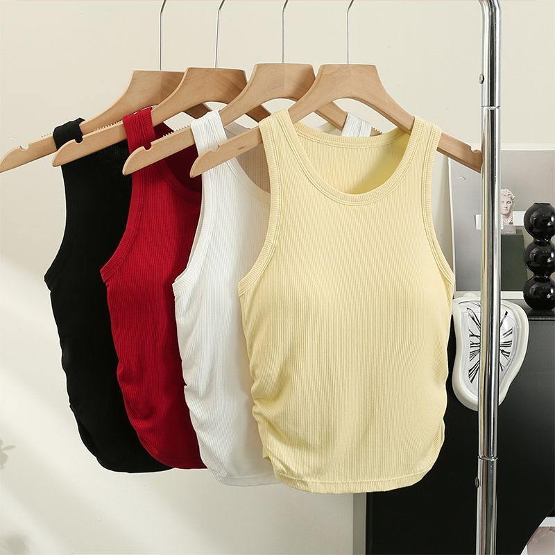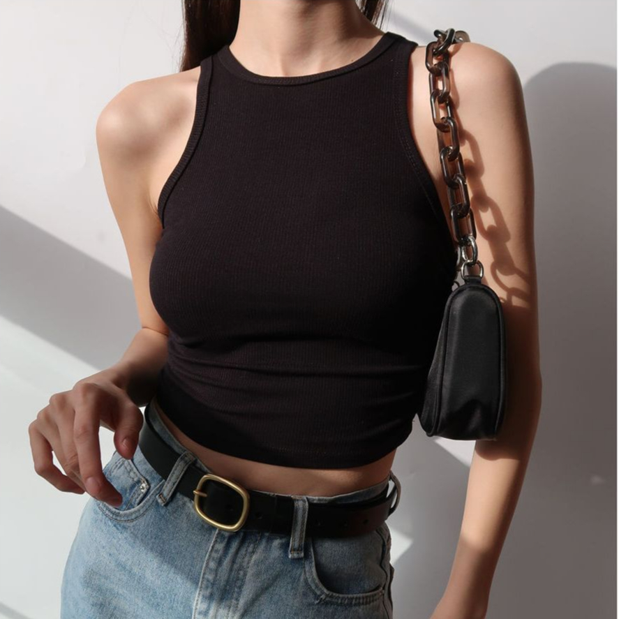 เสื้อครอป ครอปบราแขนกุด ฟองน้ำในตัว ทรงสวย กระชับ ผ้านิ่ม